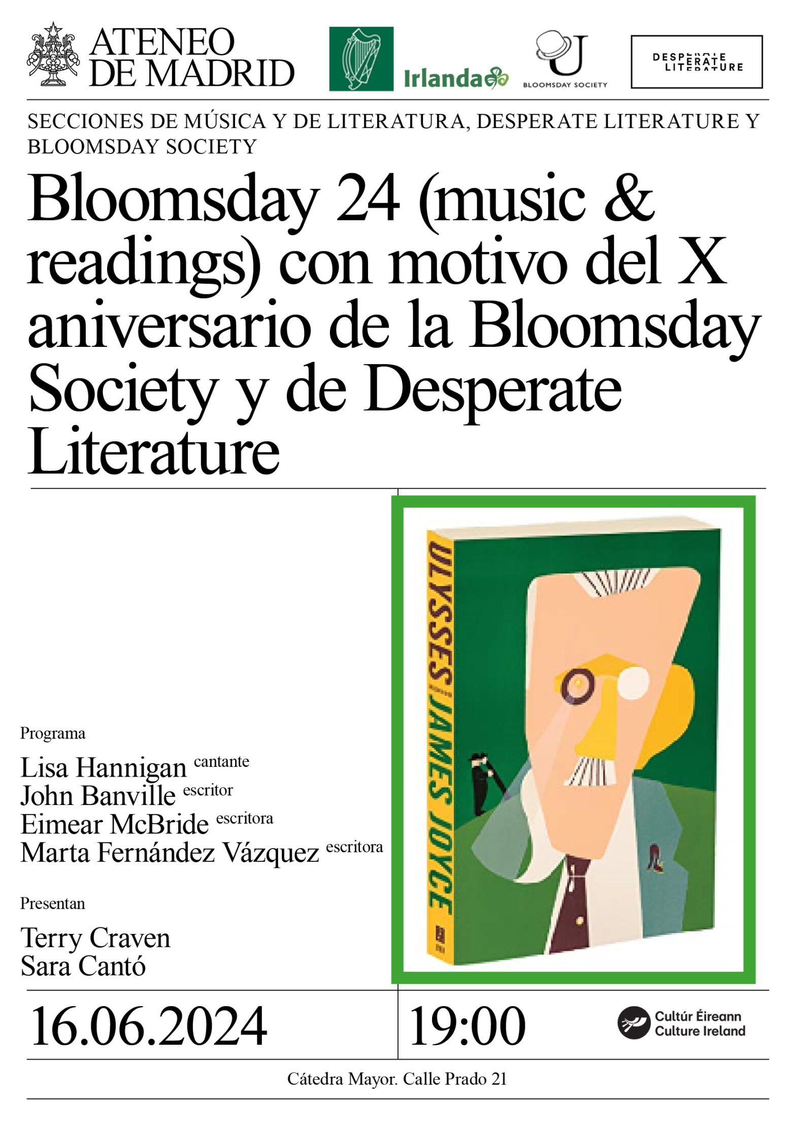 Sección de Música, Sección de Literatura, Desperate Literature y Bloomsday Society. Patrocinan: Culture Ireland, Turismo de Irlanda, Embajada de Irlanda. Programa: Lisa Hannigan, cantante; John Banville, escritor; Eimear McBride, escritora; y Marta Fernández Vázquez, escritora. Presentan: Terry Craven y Sara Cantó. Cátedra Mayor. 19:00h.
