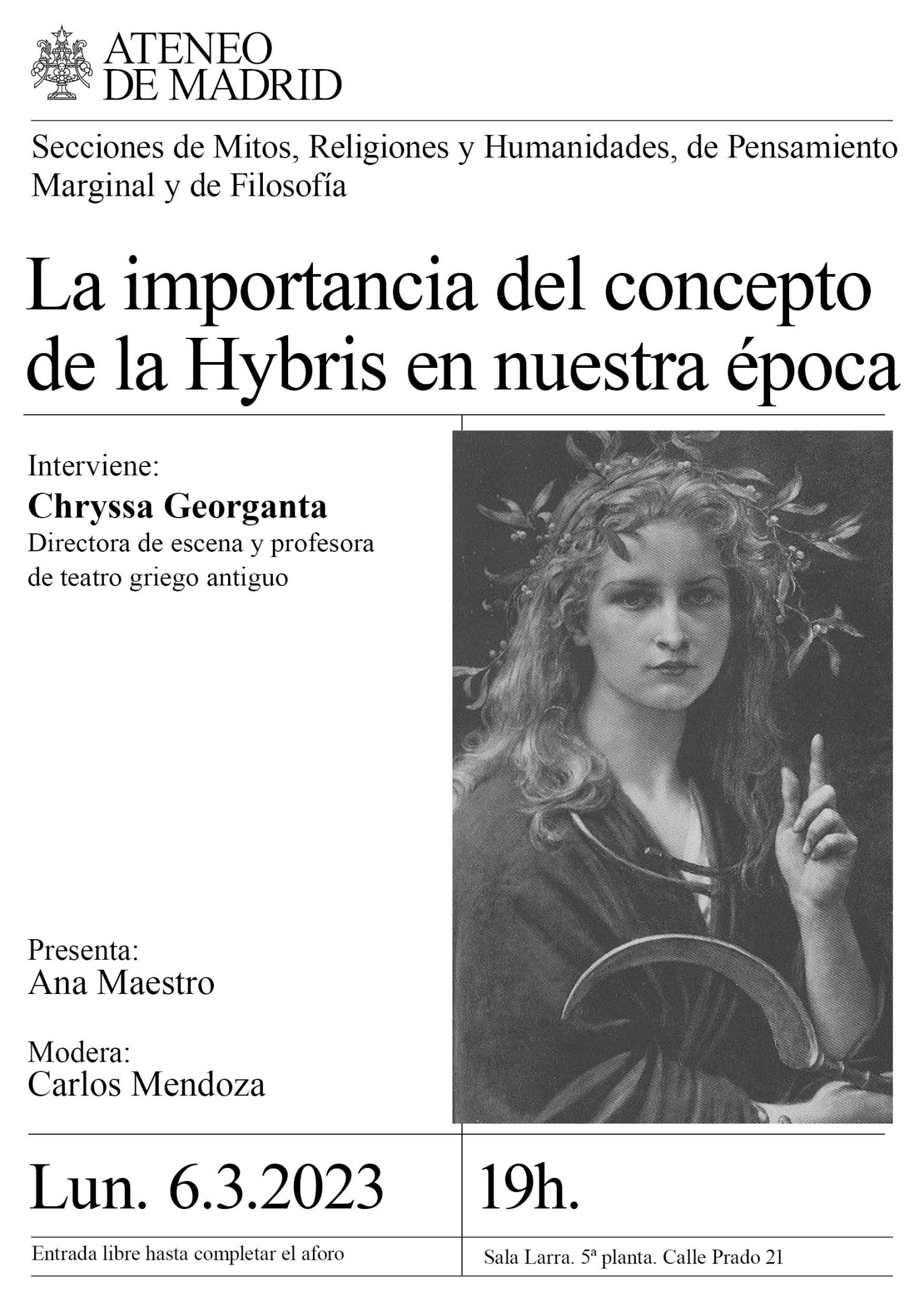 Secciones de Mitos, Religiones y Humanidades, de Pensamiento Marginal y de Filosofía. Interviene: Chryssa Georganta, directora de escena y profesora de teatro griego antiguo. Presenta: Ana Maestro. Modera: Carlos Mendoza. 19h. Sala Larra.
