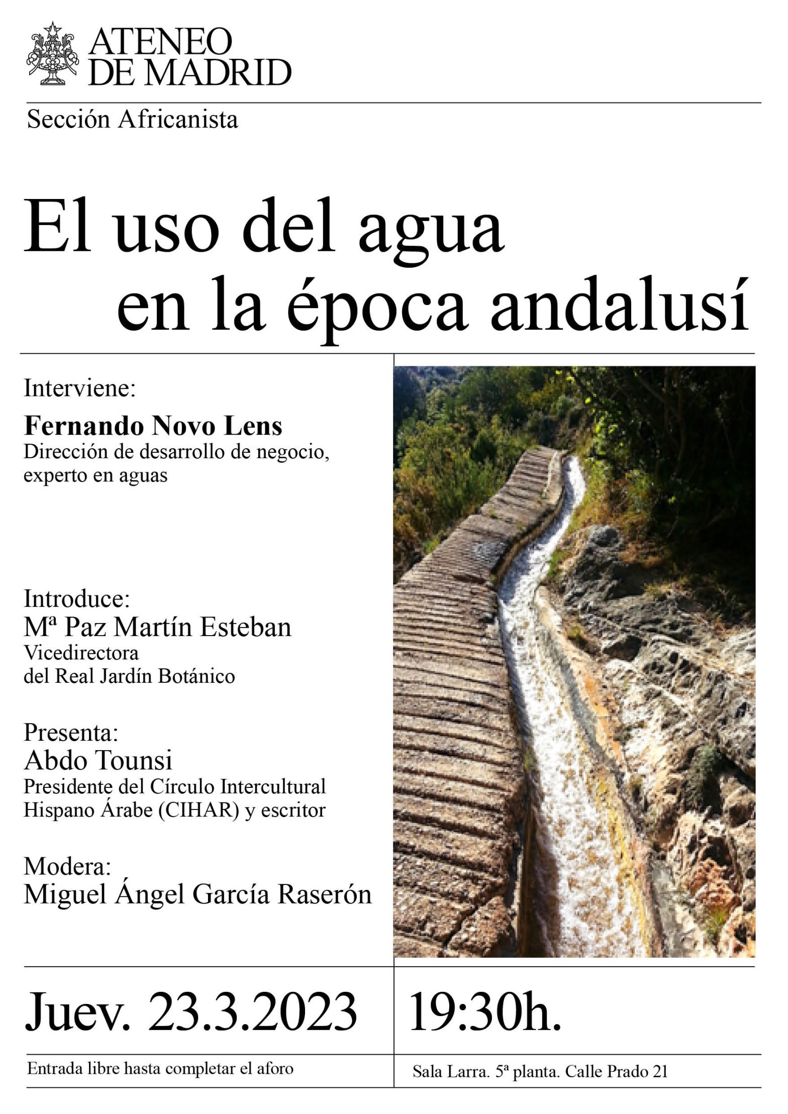 Sección Africanista. Interviene: Fernando Novo Lens, dirección de desarrollo de negocio, experto en aguas. Introduce: Mª Paz Martín Esteban, vicedirectora del Real Jardín Botánico. Presenta: Abdo Tounsi, presidente del Círculo Intercultural Hispano Árabe (CIHAR) y escritor. Modera: Miguel Ángel García Raserón. Sala Larra. 19:30h.