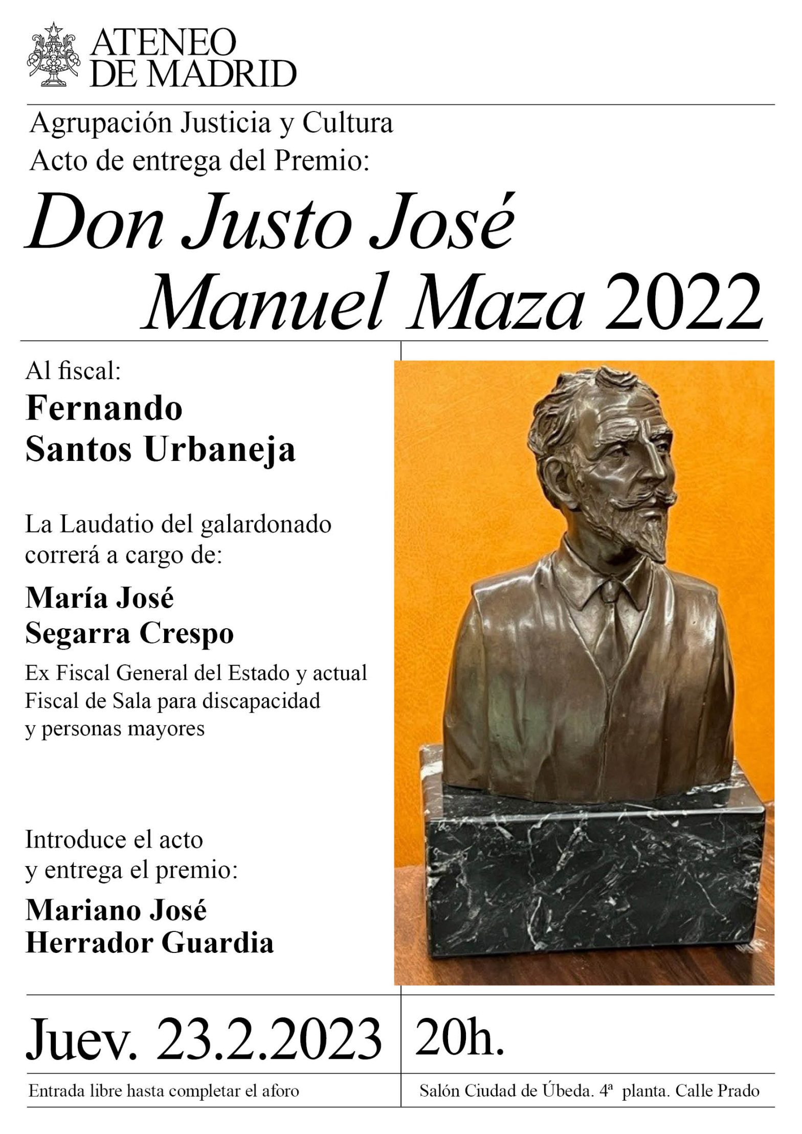 Acto de entrega del Premio «Don Justo José Manuel Maza 2022» al Fiscal D. Fernando Santos Urbaneja