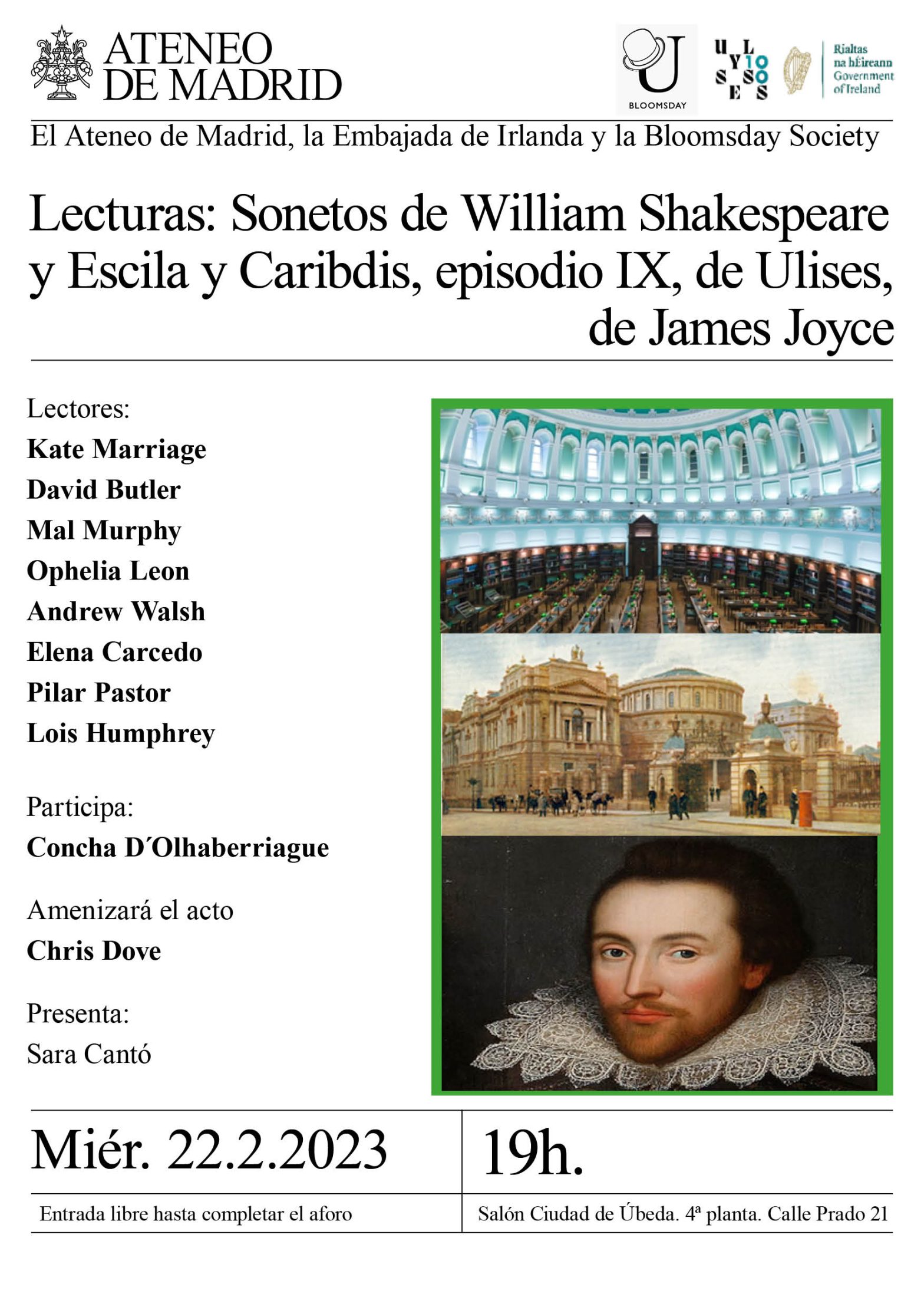 Lecturas: Sonetos de William Shakespeare  y Escila y Caribdis, episodio IX, de Ulises, de James Joyce