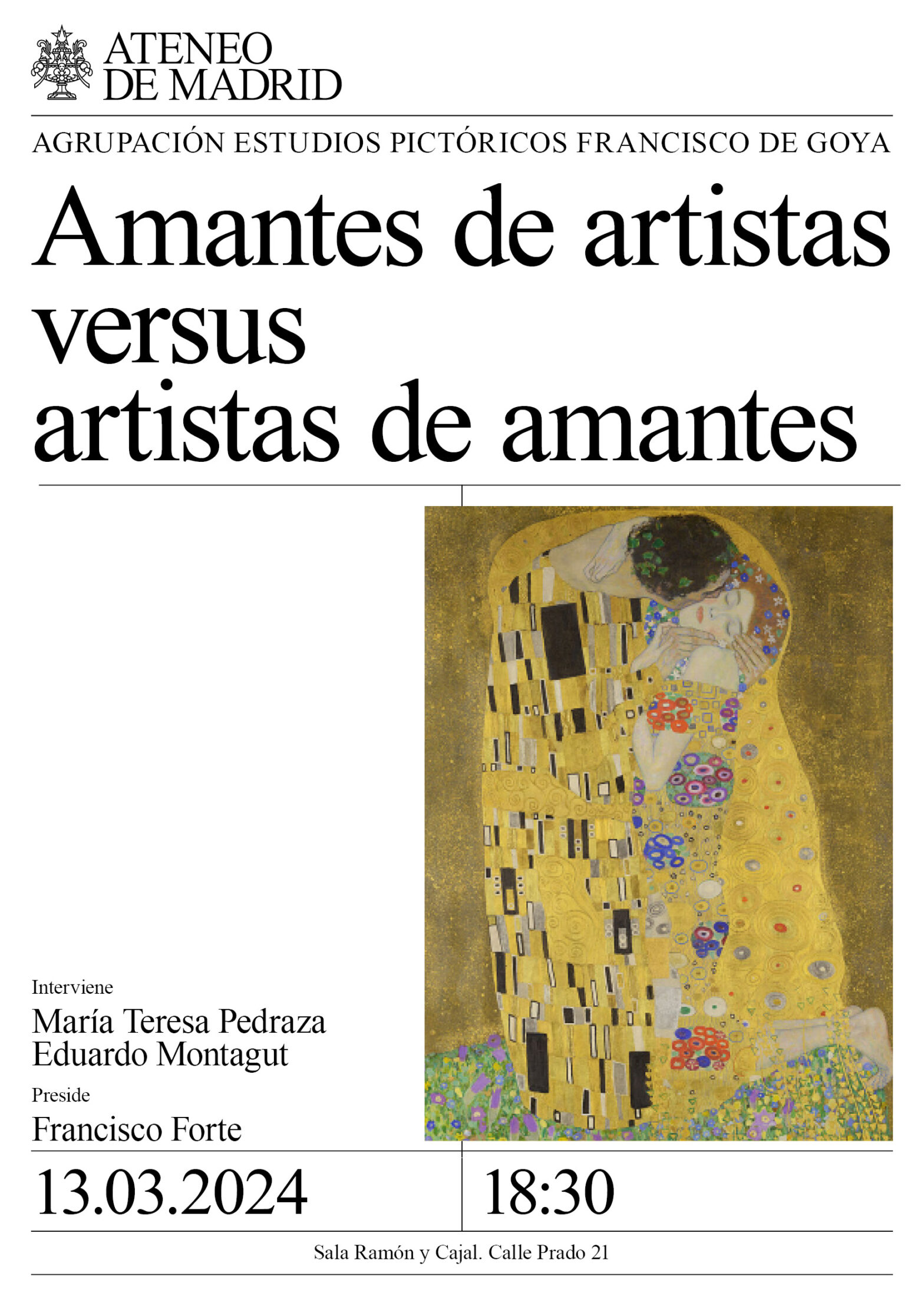 Agrupación Estudios pictóricos y sociales Francisco de Goya. Intervienen: María Teresa Pedraza, enfermera, pintora, escritora en obras colectivas de literatura y psicoanálisis. Eduardo Montagut Contrera, doctor en Historia, profesor de Secundaria y editor de El Obrero. Preside: Francisco Forte. Sala Ramón y Cajal. 18:30h.