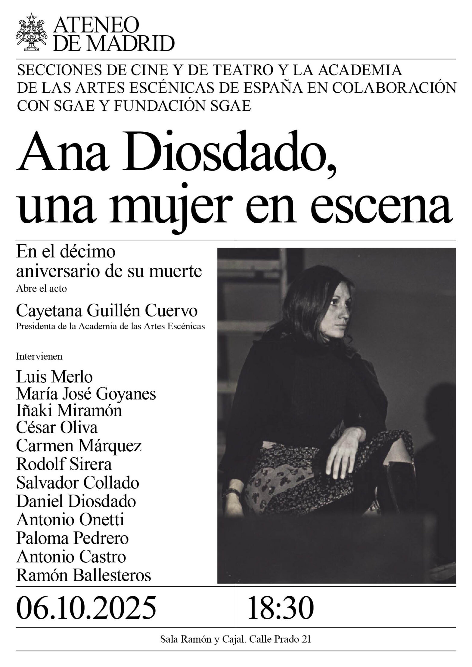 Abre el acto: Cayetana Guillén Cuervo, presidenta de la Academia de las Artes Escénicas. Intervienen: Luis Merlo, María José Goyanes, Iñaki Miramón, César Oliva, Carmen Márquez, Rodolf Sirera, Salvador Collado, Daniel Diosdado, Antonio Onetti, Paloma Pedrero, Antonio Castro, y Ramón Ballesteros. Sala Ramón y Cajal. 18:30h.