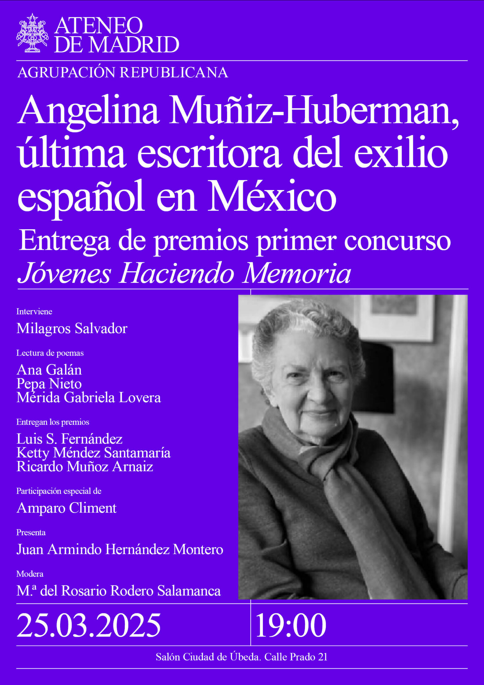 Angelina Muñiz-Huberman última, escritora del exilio español en México y Entrega de premios primer concurso Jóvenes Haciendo Memoria