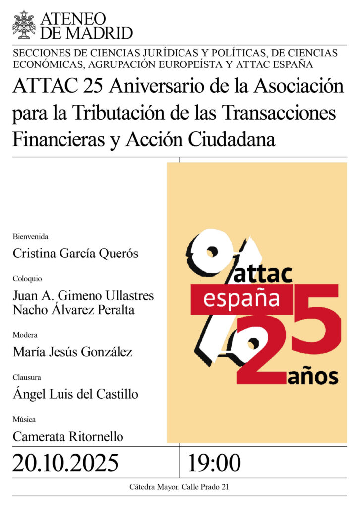 ATTAC 25 Aniversario de la Asociación para la Tributación de las Transacciones Financieras y Acción Ciudadana