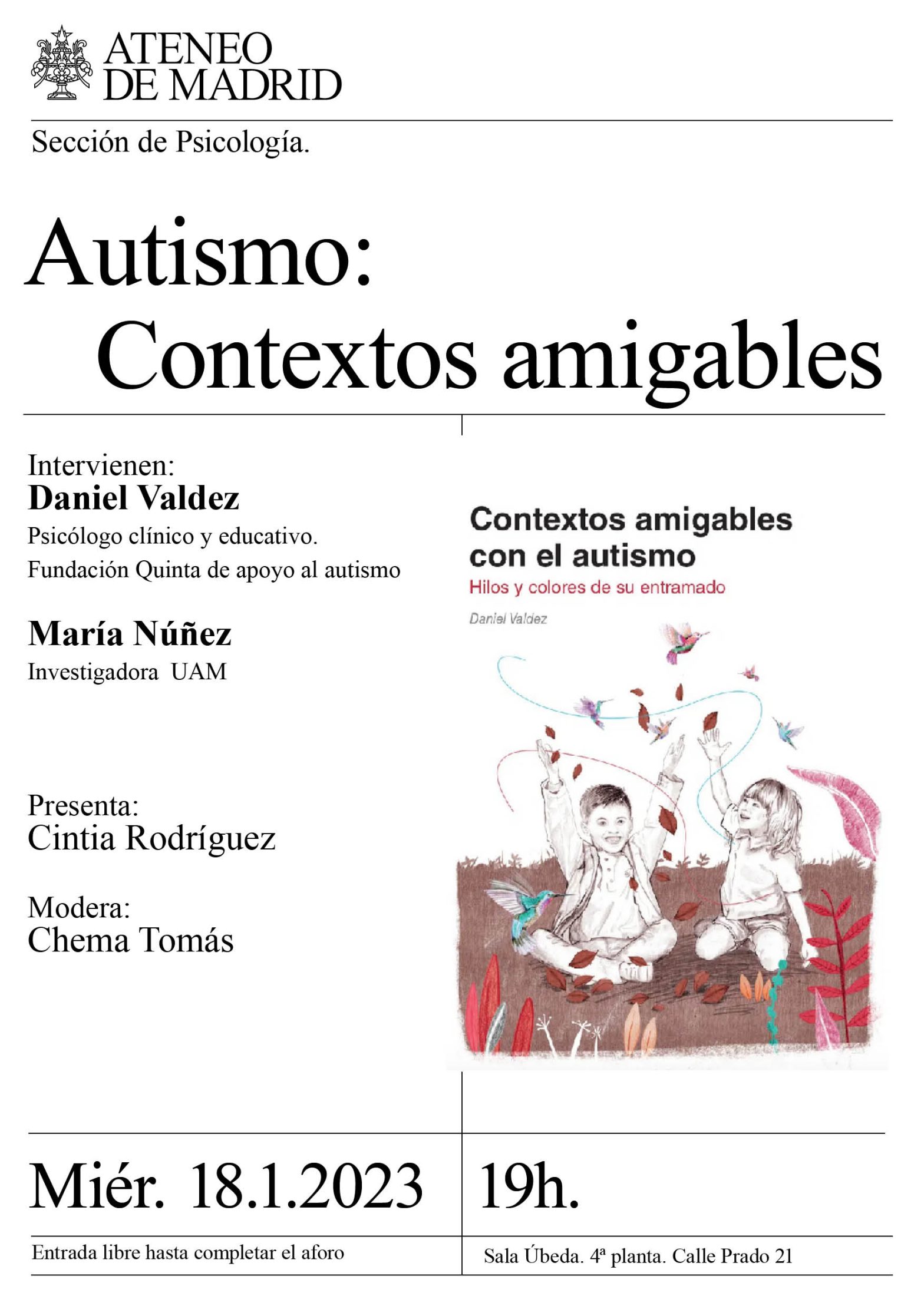 Sección de Psicología. Intervienen: Daniel Valdez, psicólogo clínico y educativo. Fundación Quinta. Apoyo al Autismo y María Núñez, investigadora Beatriz Galindo Senior, UAM. Presenta: Cintia Rodríguez. Modera: Chema Tomás. Sala Úbeda. 19h.