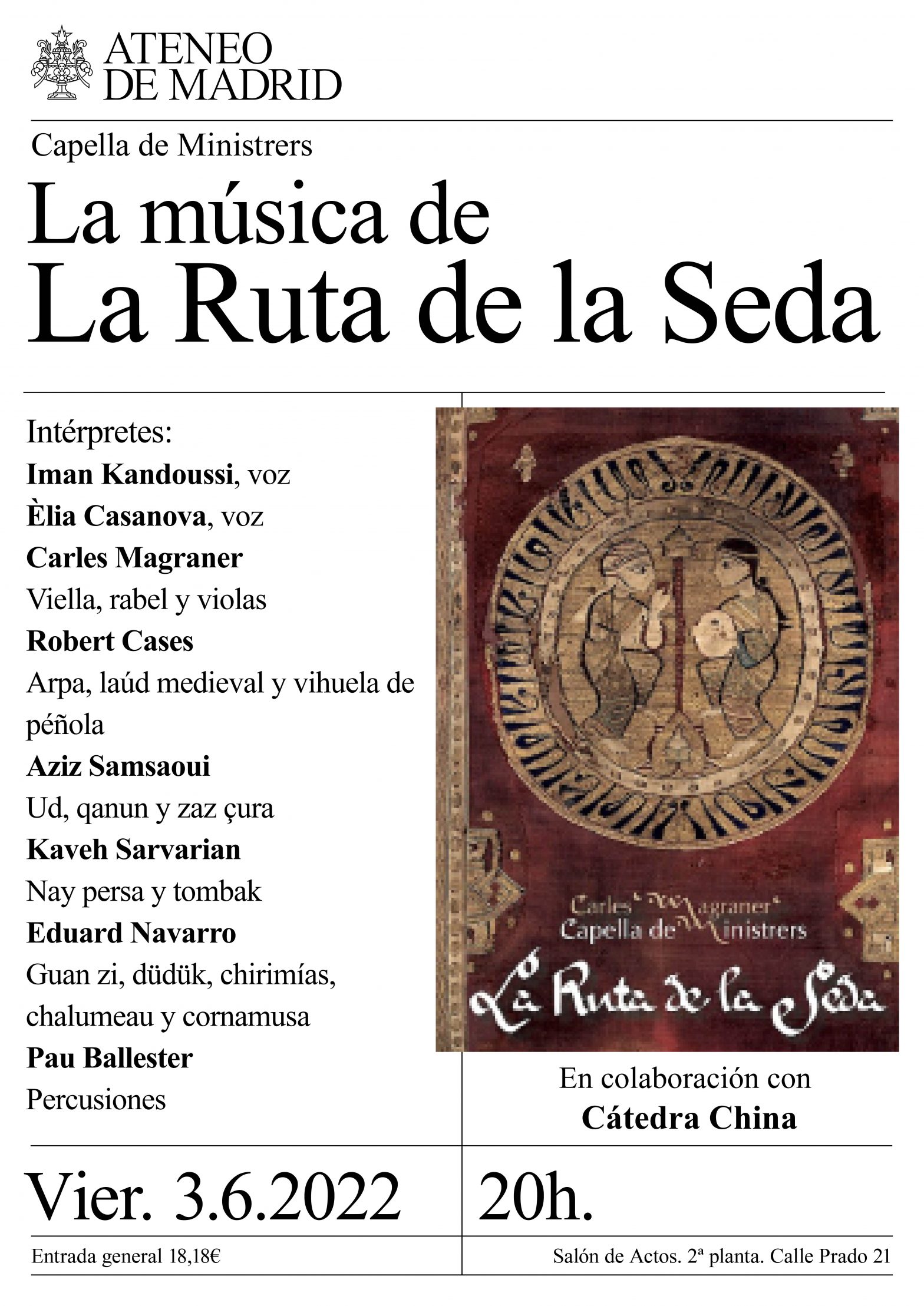 LA RUTA DE LA SEDA. Capella de Ministrers – Carles Magraner. Oriente y el Mediterráneo. La Ruta de la Seda es uno de los logros más significativos de la historia de las civilizaciones. Por la gran Ruta de la Seda no solamente circulaban las caravanas comerciales, también las culturas de los pueblos, los valores espirituales, las ideas religiosas. Recrear este viaje musical por la Ruta de la Seda es una tarea apasionante que solamente se puede realizar desde la humildad que promueve tanta grandeza y diversidad musical. En colaboración con Cátedra China.