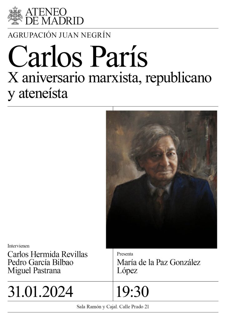 Agrupación Ateneísta Juan Negrín. Intervienen: Carlos Hermida Revillas, Pedro García Bilbao y Miguel Pastrana. Presenta: María de la Paz González López. Sala Ramón y Cajal. 19:30h.