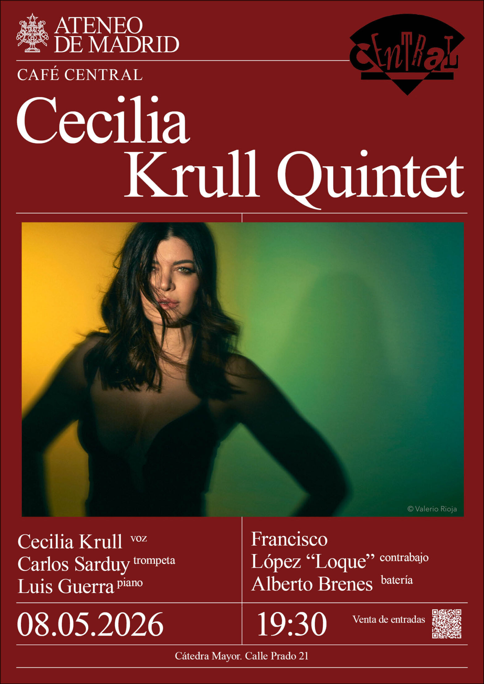 Ateneo – Café Central. Cecilia Krull, voz; Carlos Sarduy, trompeta; Luis Guerra, piano; Francisco López “Loque”, contrabajo; y Alberto Brenes, batería. Cátedra Mayor. 19:30h.
