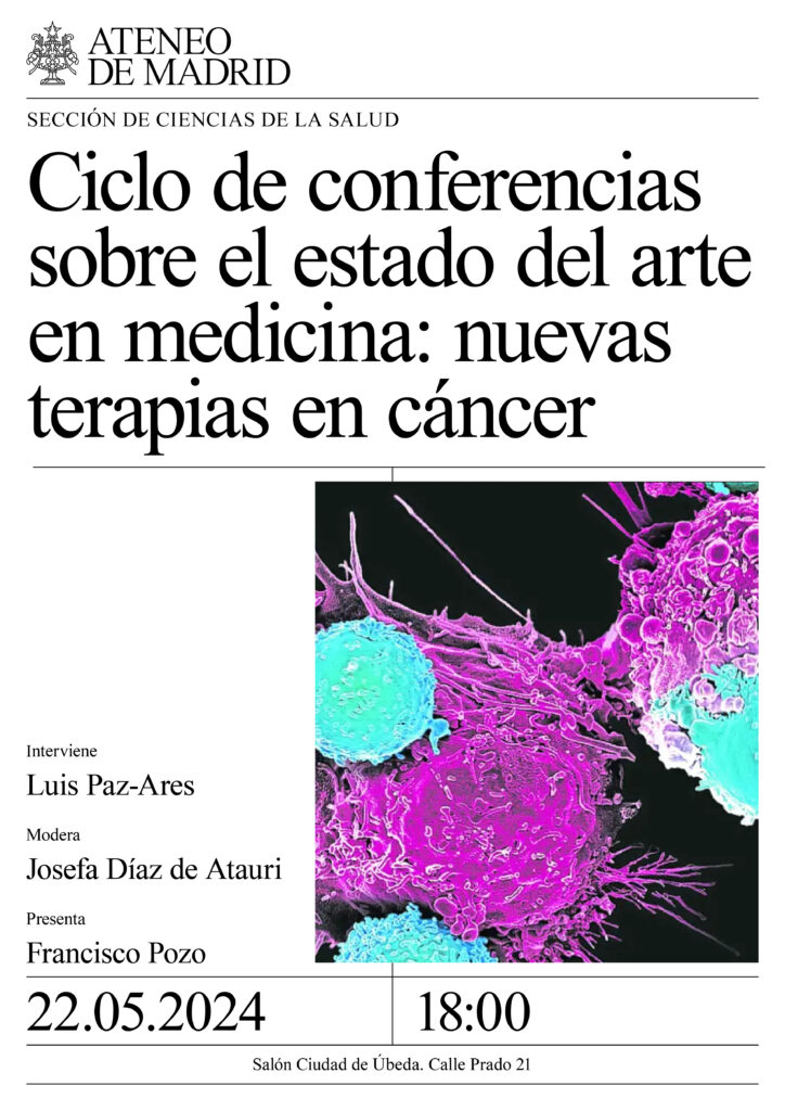 Sección de Ciencias de la Salud. Interviene: Luis Paz-Ares, oncólogo, Jefe de Servicio del Hospital 12 de Octubre. Modera: Josefa Díaz de Atauri, neumóloga. Presenta: Francisco Pozo. Salón Ciudad de Úbeda. 18:00h.