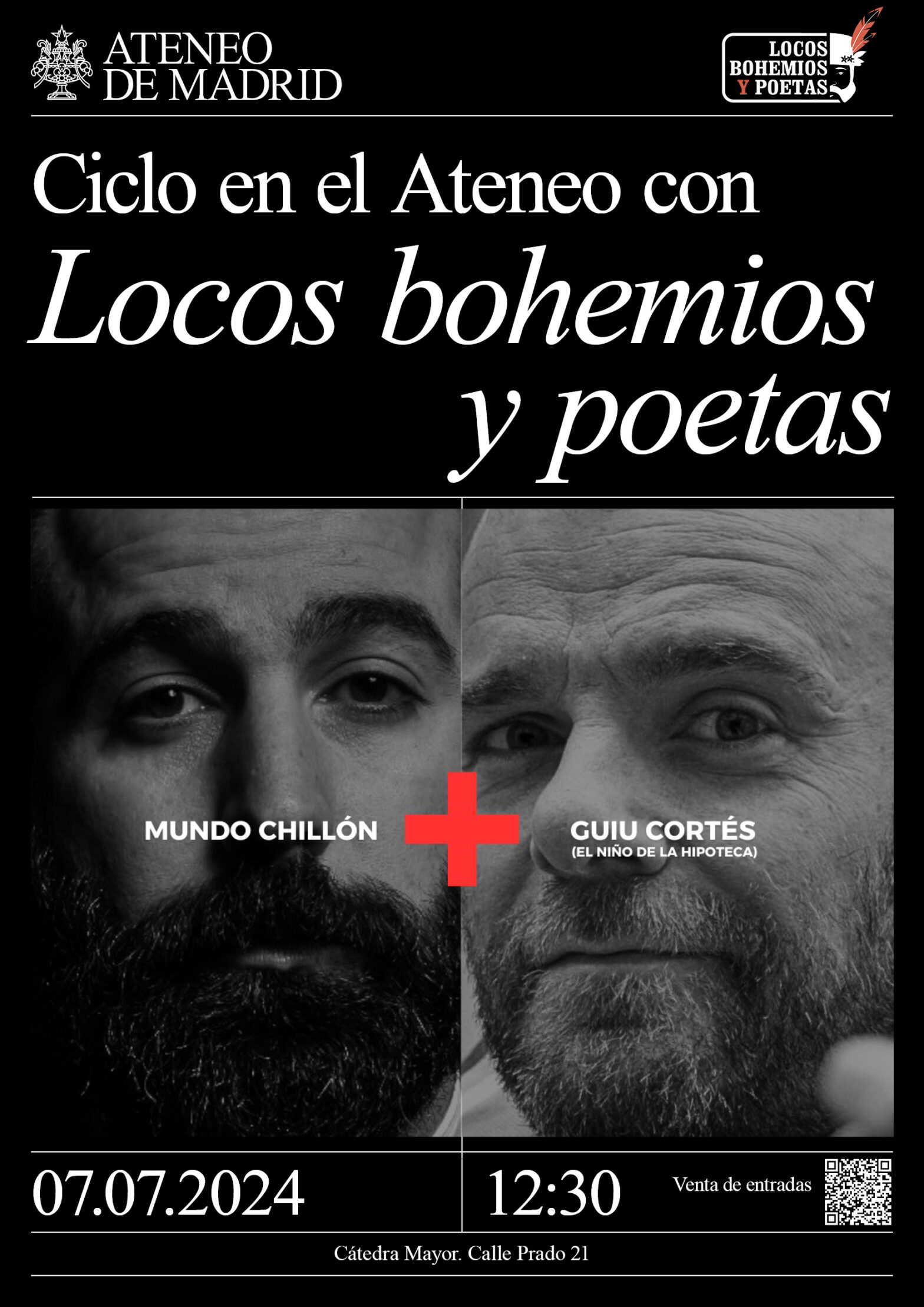 Artistas invitados: MUNDO CHILLÓN Y GUIU CORTÉS (EL NIÑO DE LA HIPOTECA). Venta de entradas (aquí). Los socios del Ateneo pueden solicitar sus entradas con descuento (15€) en este mail rubenmartin@icam.es.