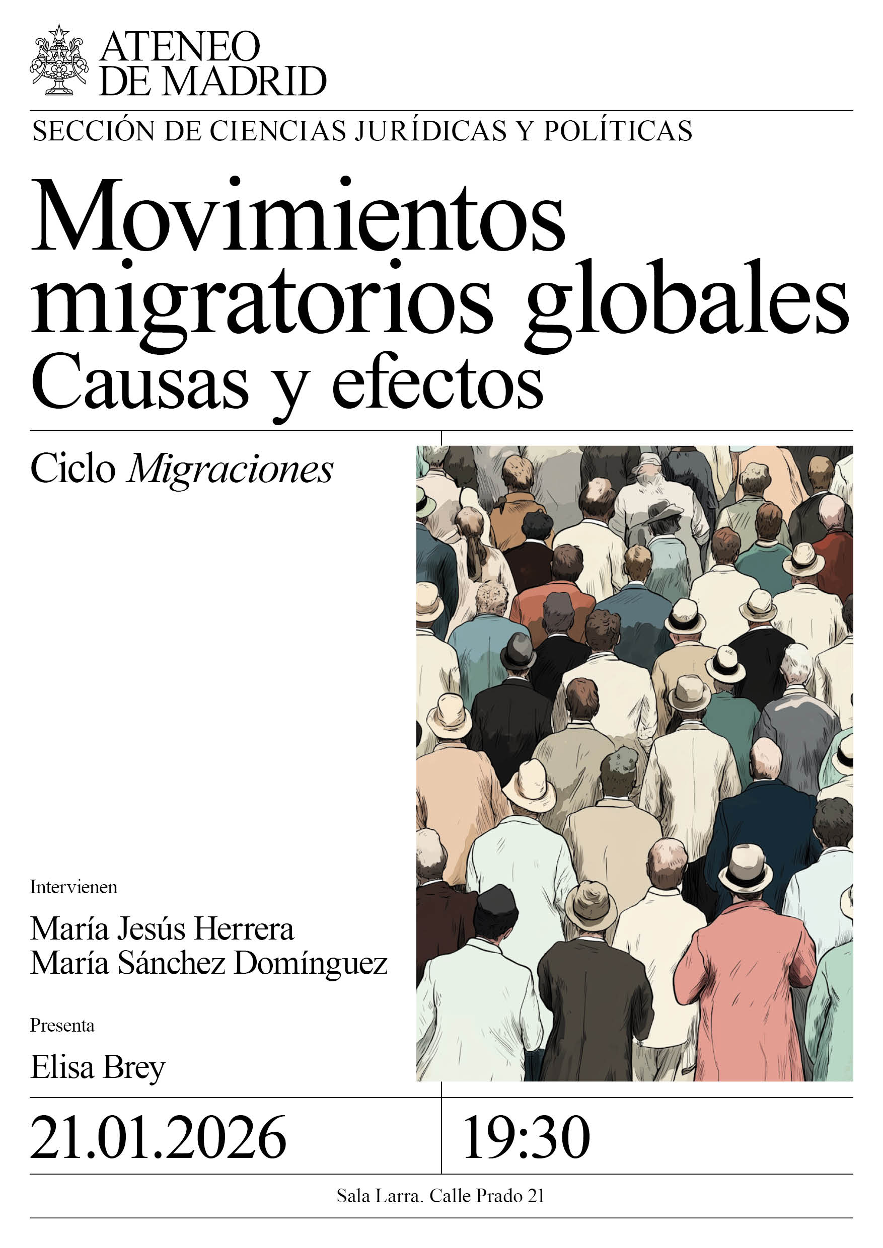 Sección de Ciencias Económicas. Intervienen: María Jesús Herrera, jefa de la Misión de la O.I.M. en España. y Maria Sánchez Domínguez, profesora de Sociologia en la U.C.M. Presenta: Elisa Brey. Sala Larra. 19:30h.