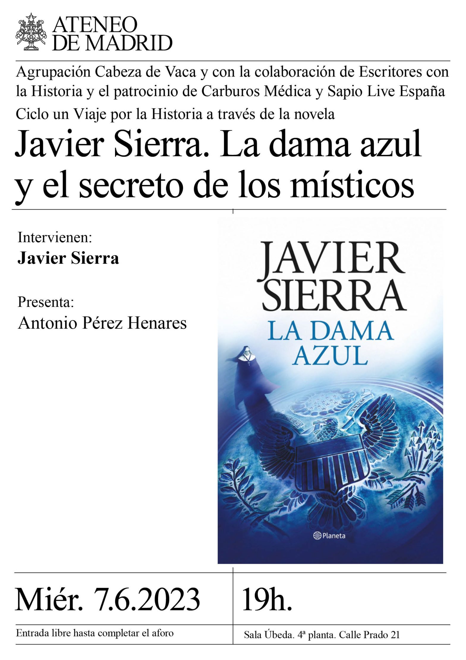 Agrupación Cabeza de Vaca y con la colaboración de Escritores con la Historia y el patrocinio de Carburos Médica y Sapio Live España. Intervienen: Javier Sierra. Presenta: Antonio Pérez Henares. Sala Úbeda. 19h.
