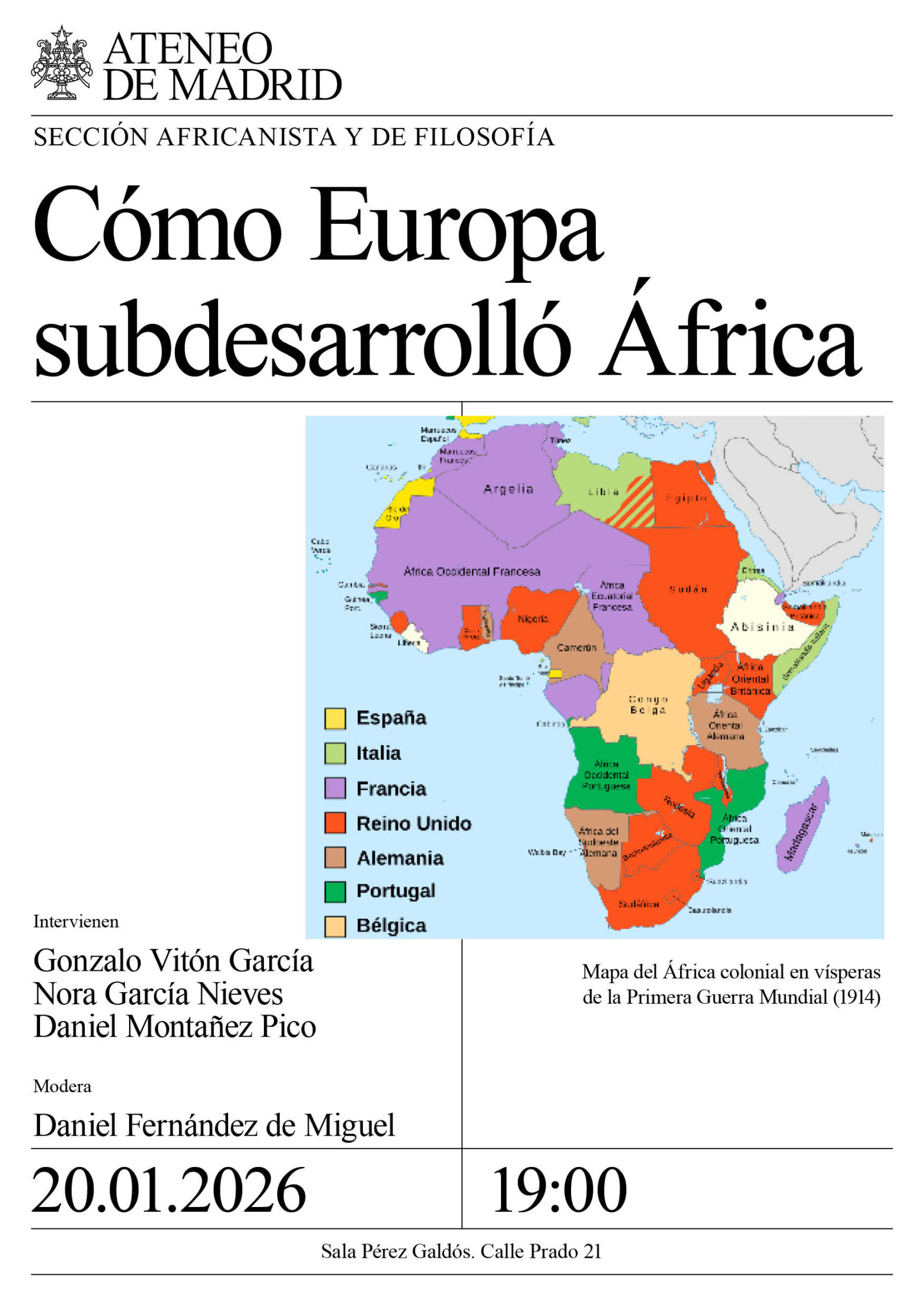 Secciones Africanista y de Filosofía. Intervienen: Gonzalo Vitón García, redactor y editor en la revista Mundo Negro, doctor en Historia Contemporánea, especialista en Estudios Africanos y de Construcción de Paz; Nora García Nieves, activista y referente feminista en justicia social, responsable de la región de África en la secretaría de Internacional del PC; y Daniel Montañez Pico, profesor de la Universidad Complutense de Madrid especializado en marxismo afrocaribeño y pensamiento descolonizador. Sala Pérez Galdós. 19:00h.