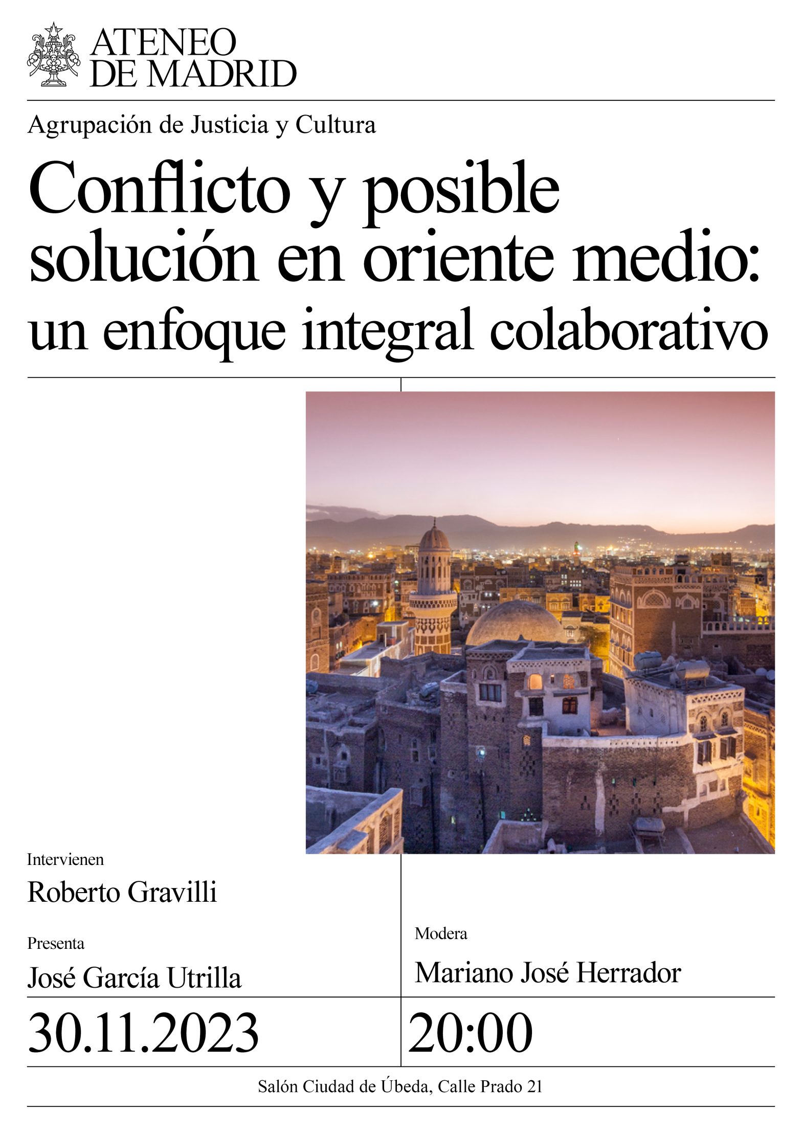 Agrupación de Justicia y Cultura. Intervendrán: Roberto Gravilli experto en misiones internacionales en Líbano y Kosovo Presenta: José García Utrilla mediador internacional Moderador: Mariano José Herrador Guardia abogado Salón Ciudad de Úbeda. 20:00h.