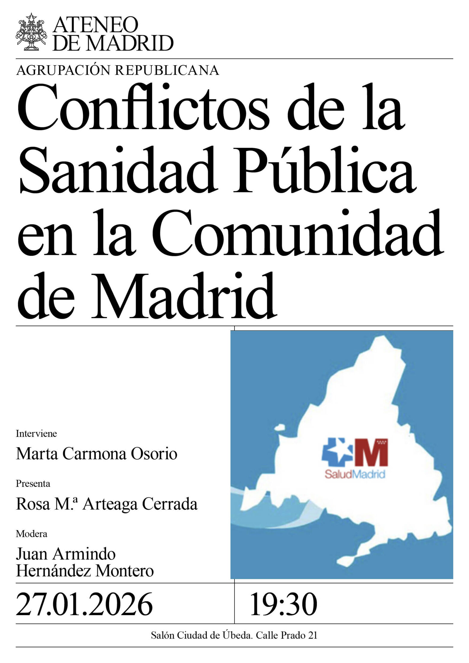 Agrupación Republicana. Ponente: Marta Carmona Osorio, psiquiatra Comunitaria, diputada y portavoz de Más Madrid en la Asamblea de Madrid. Presenta: Rosa M.ª Arteaga Cerrada. Modera: Juan Armindo Hernández Montero. Salón Ciudad de Úbeda. 19:30h.
