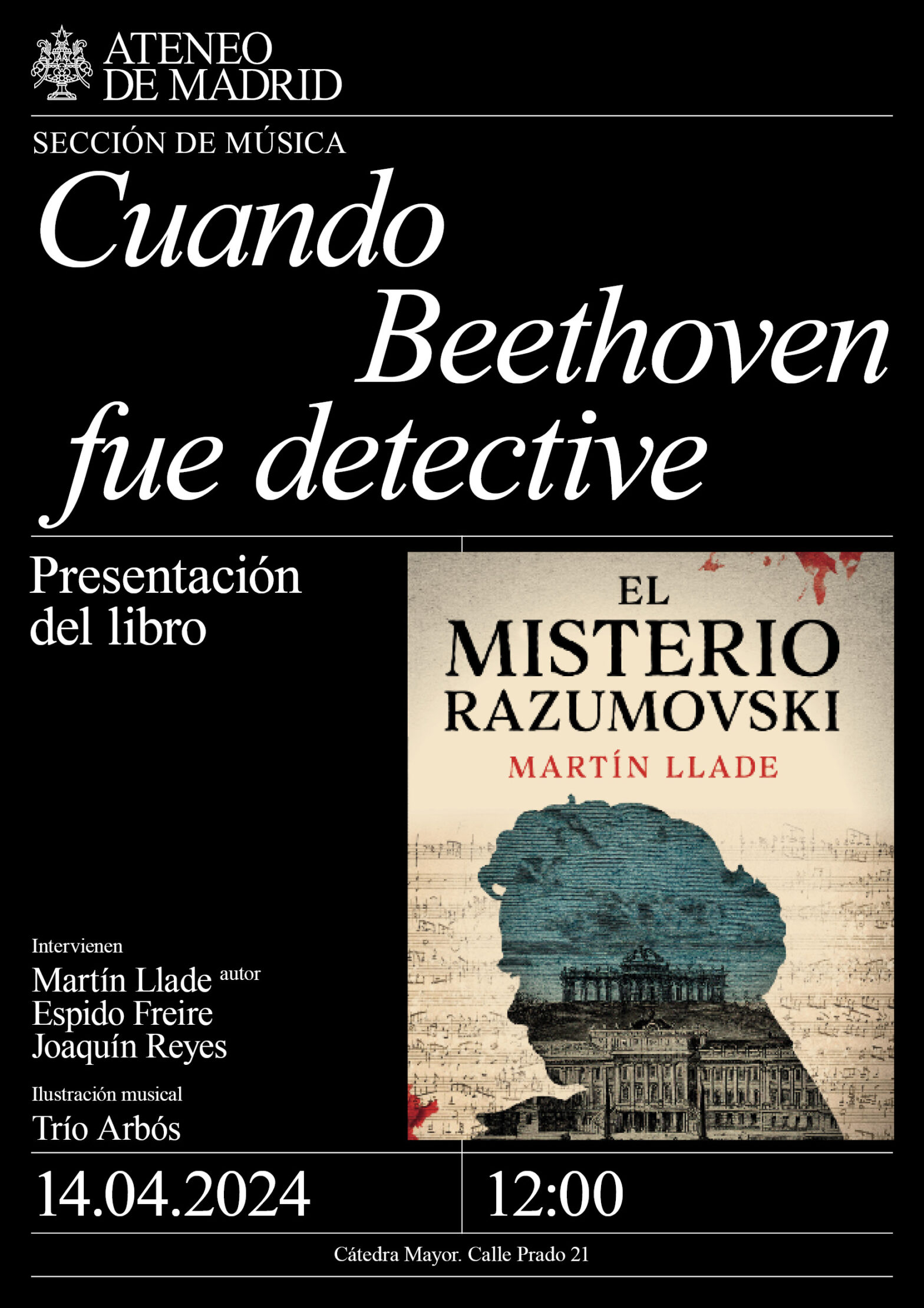 Sección de Música. Intervienen: Martín Llade, Espido Freire y Joaquín Reyes. Ilustración musical: Trío Arbós. Cátedra Mayor. 12:00h.