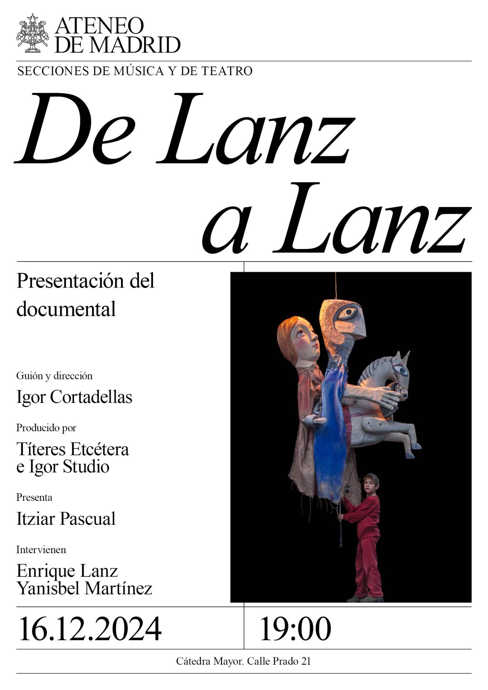 Secciones de Teatro y Música. Producido por Títeres Etcétera e Igor Studio. Guion y dirección: Igor Cortadellas. Presenta: Itziar Pascual. Intervienen Enrique Lanz y Yanisbel Martínez, codirectores de Títeres Etcétera. Cátedra Mayor. 19:00h.