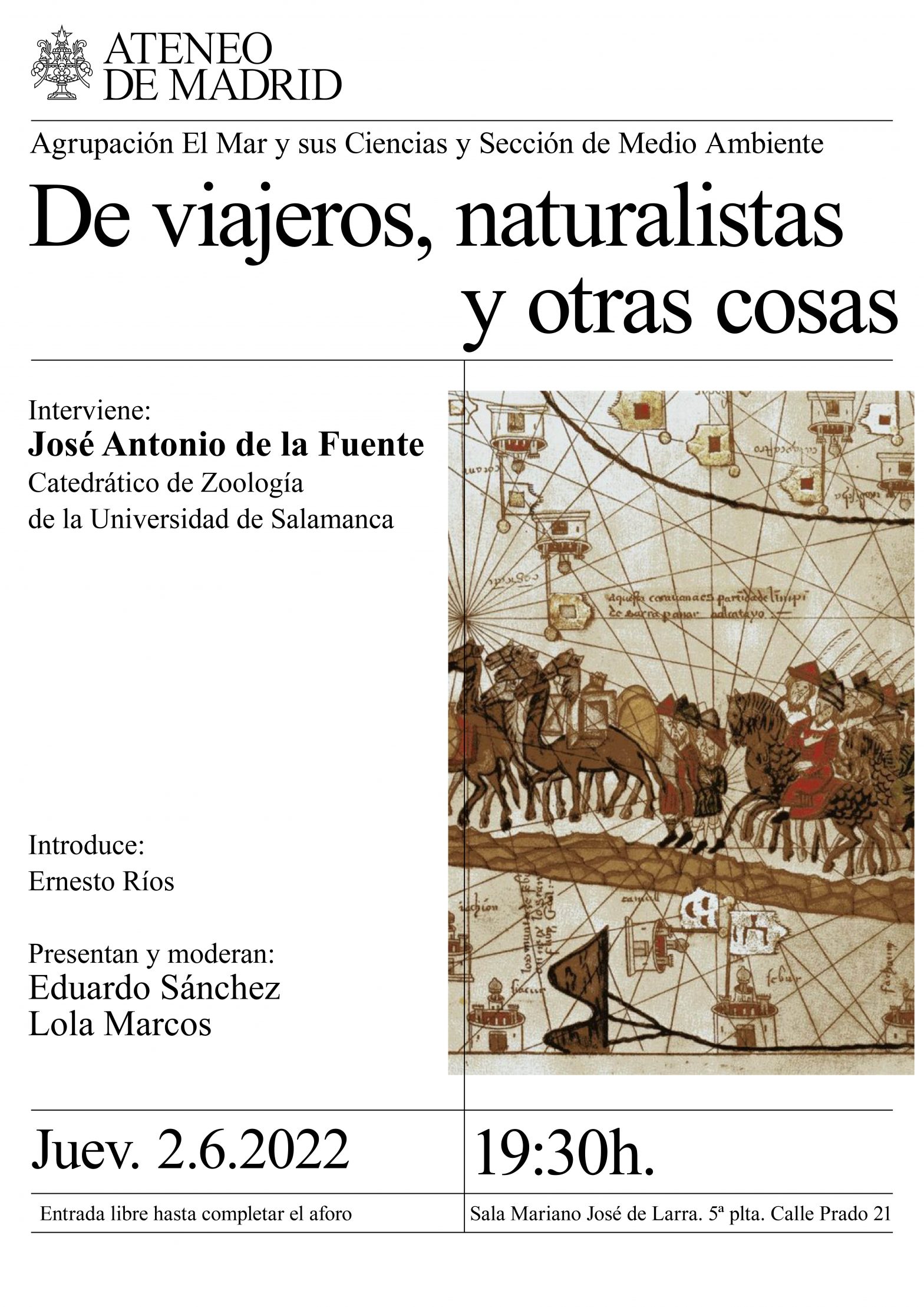 Agrupación El Mar y sus Ciencias y Sección de Medio Ambiente. Interviene: José Antonio de la Fuente, catedrático de Zoología de la Universidad de Salamanca. Introduce Ernesto Ríos. Presentan y moderan Eduardo Sánchez y Lola Marcos. Sala Mariano José de Larra.