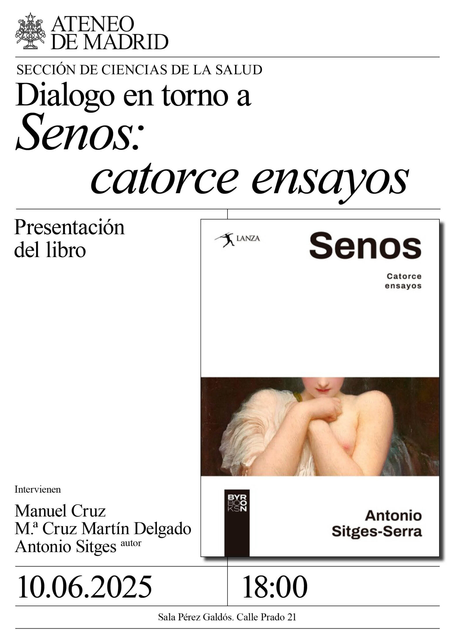 Sección de Ciencias de la Salud. Intervienen: Manuel Cruz, M.ª Cruz Martín Delgado y Antonio Sitges, autor. Sala Pérez Galdós. 18:00h.