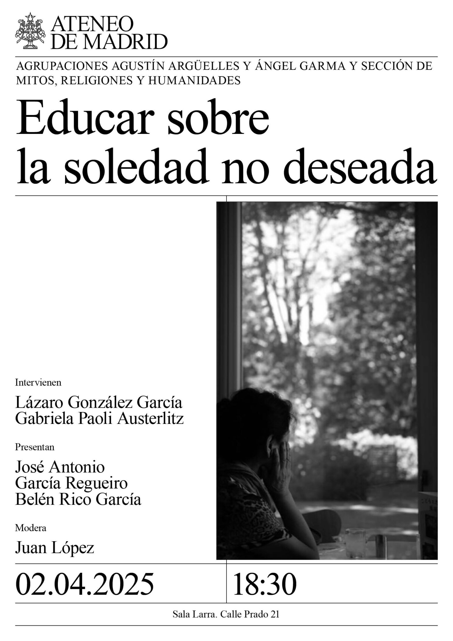 Agrupaciones Agustín Argüelles y Ángel Garma y Sección de Mitos, Religiones y Humanidades. Intervienen: Lázaro González García, psicólogo, experto en psicología evolutiva y social, y Gabriela Paoli Austerlitz, psicóloga clínica sanitaria . Presenta José Antonio García Regueiro y Belén Rico. Modera Juan López. Sala Larra. 18:30h.