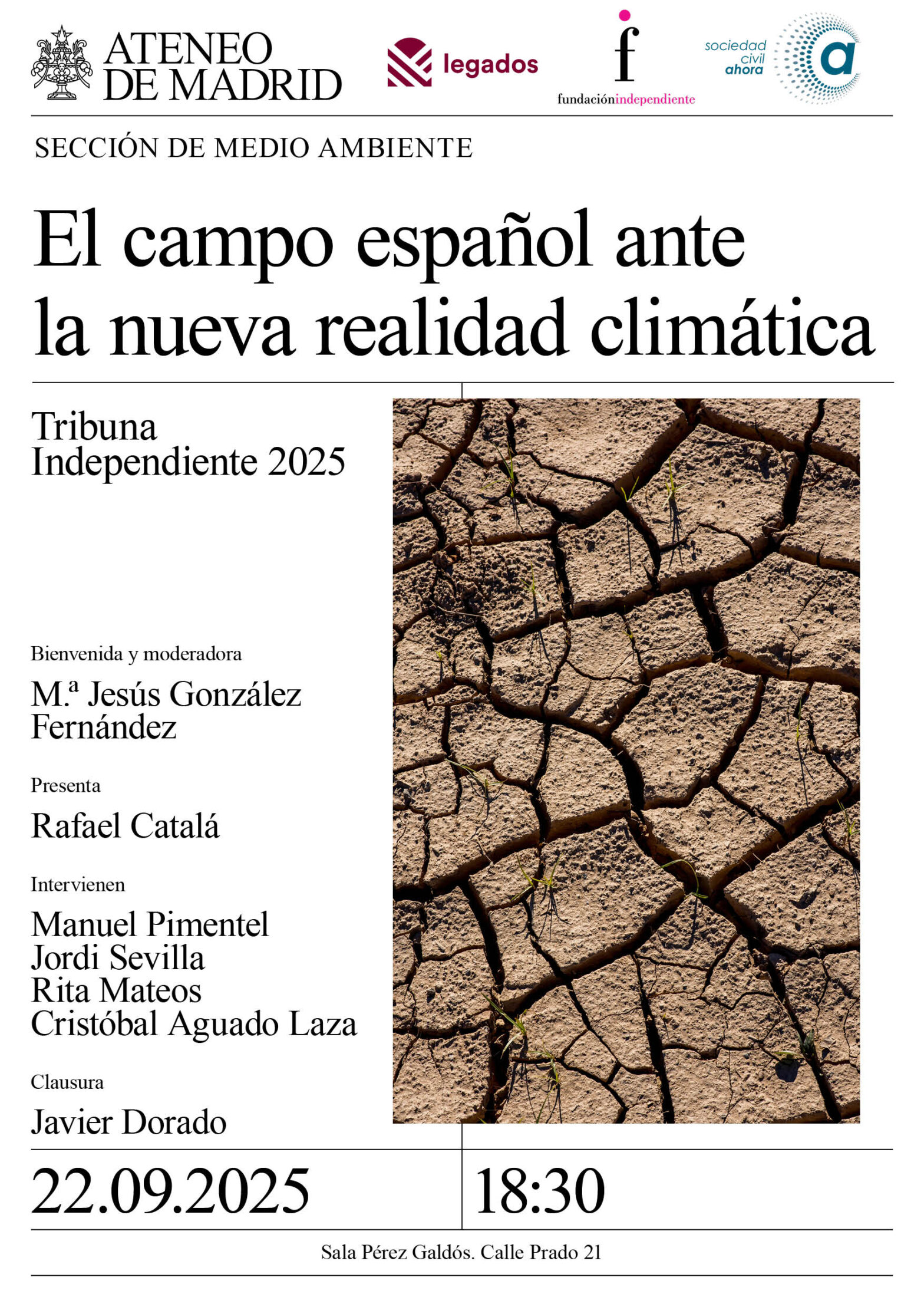 Bienvenida y moderadora: M.ª Jesús Fernández González. Presenta: Rafael Catalá, presidente de la Fundación Independiente. Intervienen: Manuel Pimentel, exministro de Trabajo y Asuntos Sociales; Jordi Sevilla, exministro de Administraciones Públicas y expresidente de Red Eléctrica de España; Rita Mateos; y Cristóbal Aguado Laza, presidente de AVA-ASAJA. Clausura: Javier Dorado, director Ejecutivo de Legados. Sala Pérez Galdós. 18:30h.