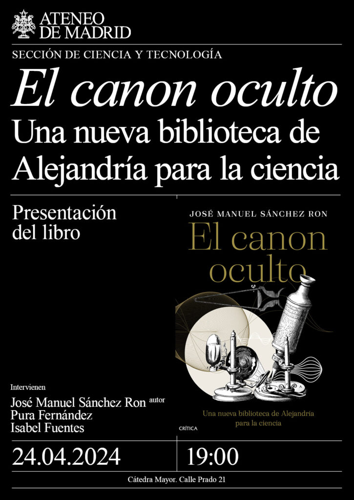 Sección de Ciencia y Tecnología. Intervienen: José Manuel Sánchez Ron, autor; Pura Fernández; e Isabel Fuentes. Cátedra Mayor. 19:00h.