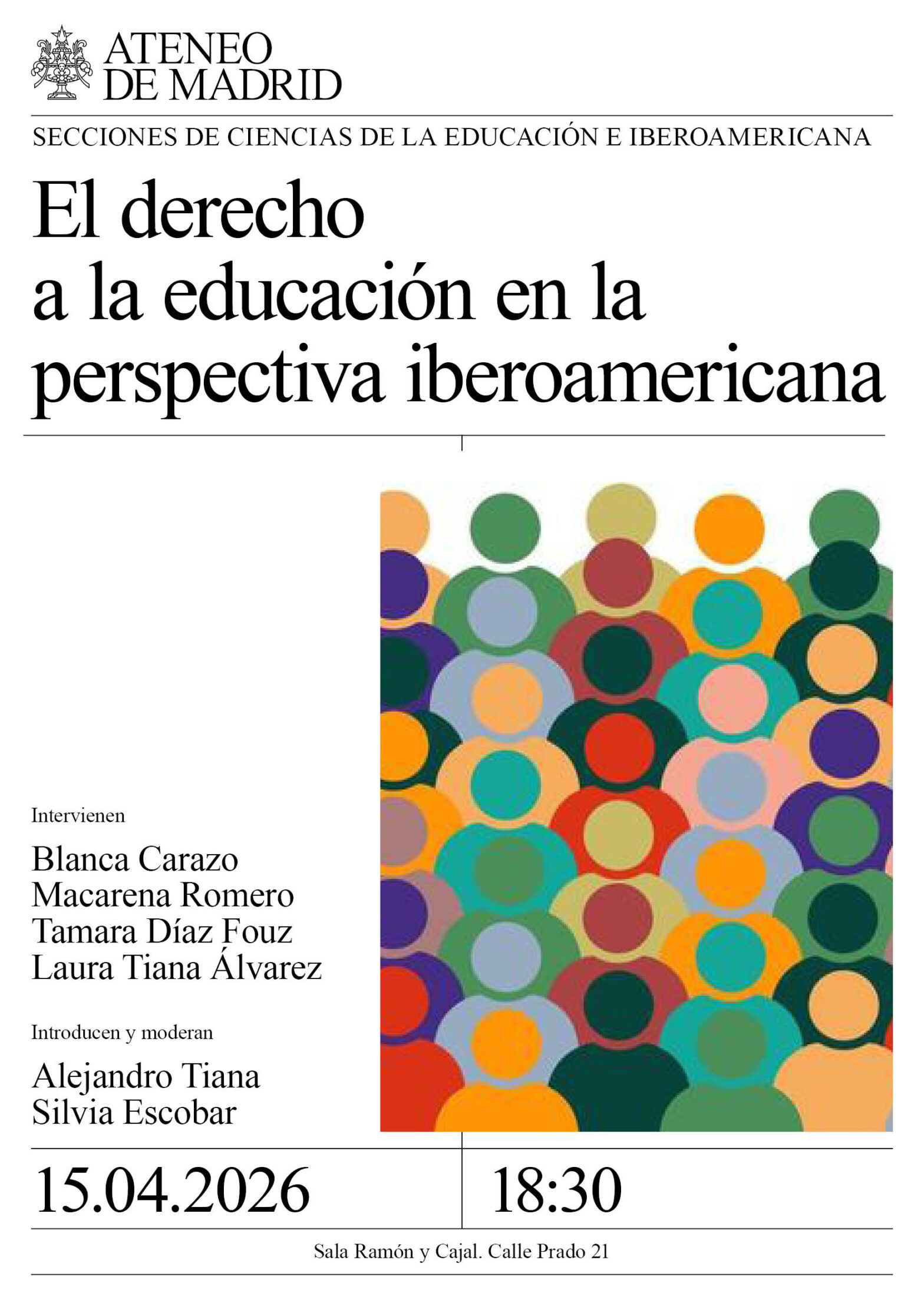 Secciones de Ciencias de la Educación e Iberoamericana. Intervienen: Blanca Carazo, UNICEF; Macarena Romero, Campaña Mundial por la Educación; Tamara Díaz Fouz, OEI; y Laura Tiana Álvarez, INEE. Introducen y moderan: Alejandro Tiana y Silvia Escobar. Sala Ramón y Cajal. 18:30h.
