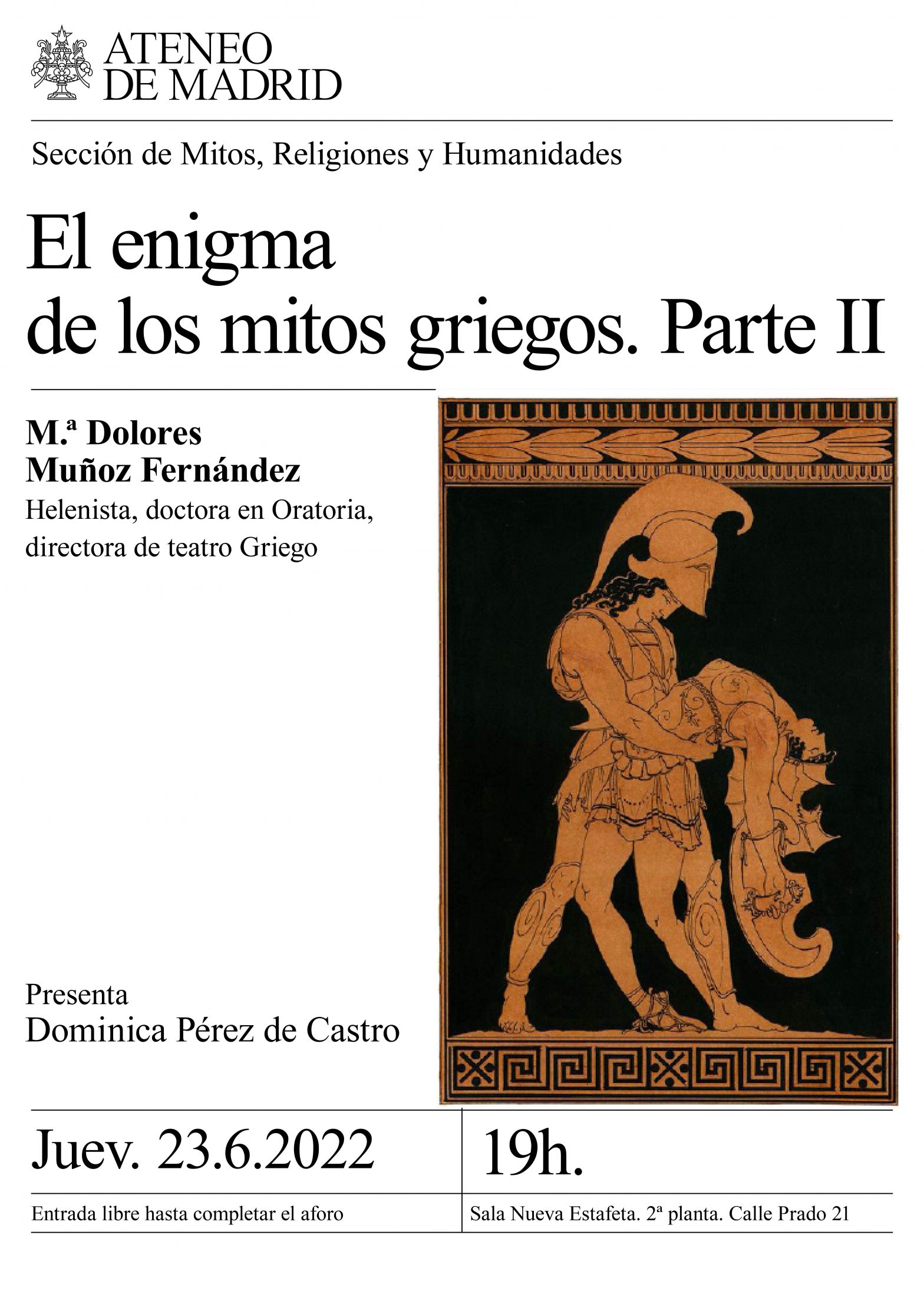 Sección-Tertulia de Mitos, Religiones y Humanidades. El enigma de los mitos griegos. Parte II. Interviene M.ª Dolores Muñoz, helenista. Sala Nueva Estafeta. 19.30 h.
