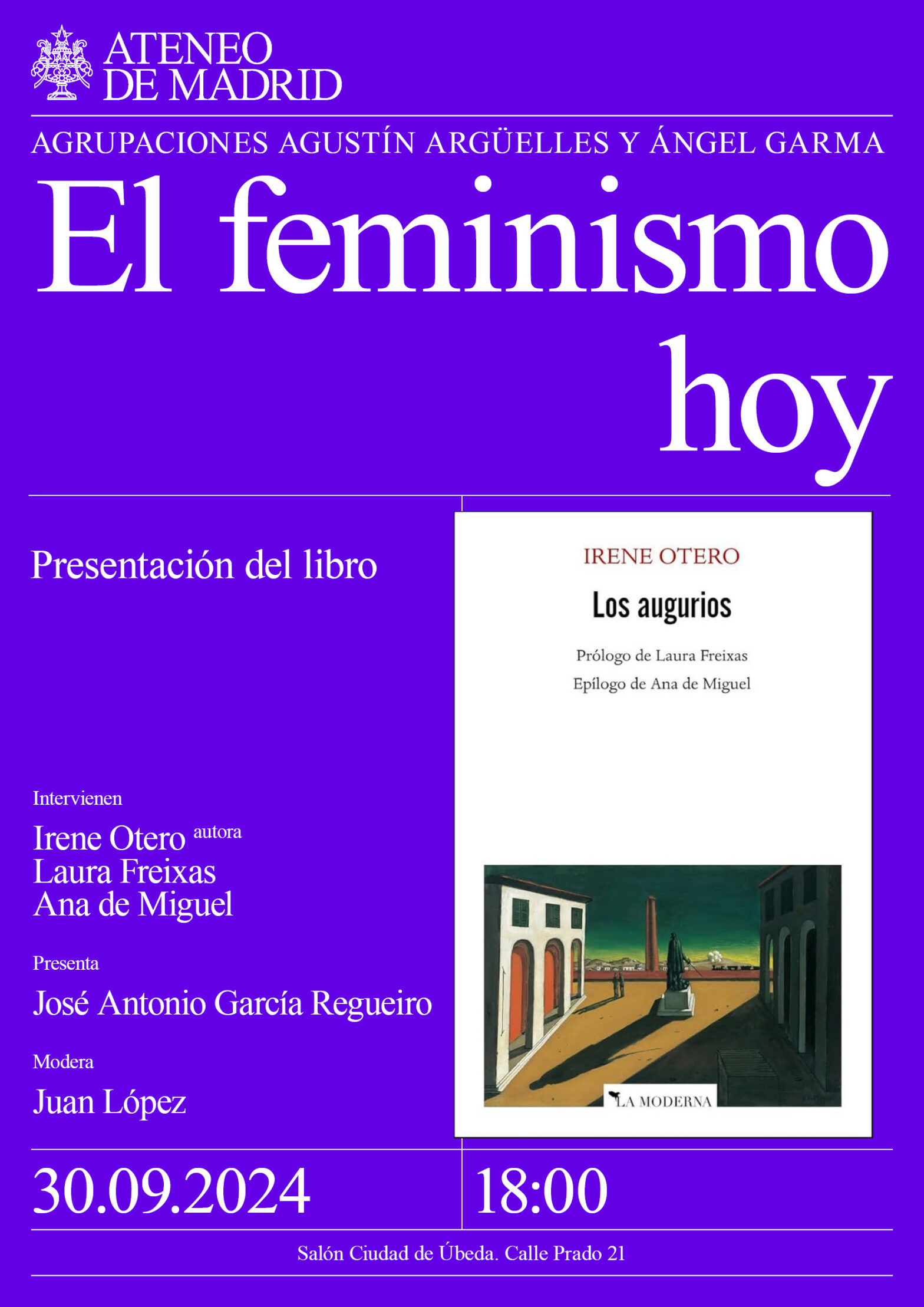 Intervienen: Irene Otero, autora, licenciada en Publicidad y máster en Comunicación Cultural; Laura Freixas, escritora, crítica literaria, traductora y Fundadora y presidenta de la Asociación feminista “Clásicas y Modernas”. Ana de Miguel, escritora, filósofa, doctora en Filosofía y Letras, profesora titular de Filosofía Moral y Política en la Universidad Rey Juan Carlos de Madrid y premio Nacional de la Federación de Mujeres Progresistas. Presenta: José Antonio García Regueiro. Modera: Juan López. Salón Ciudad de Úbeda. 18:00h.