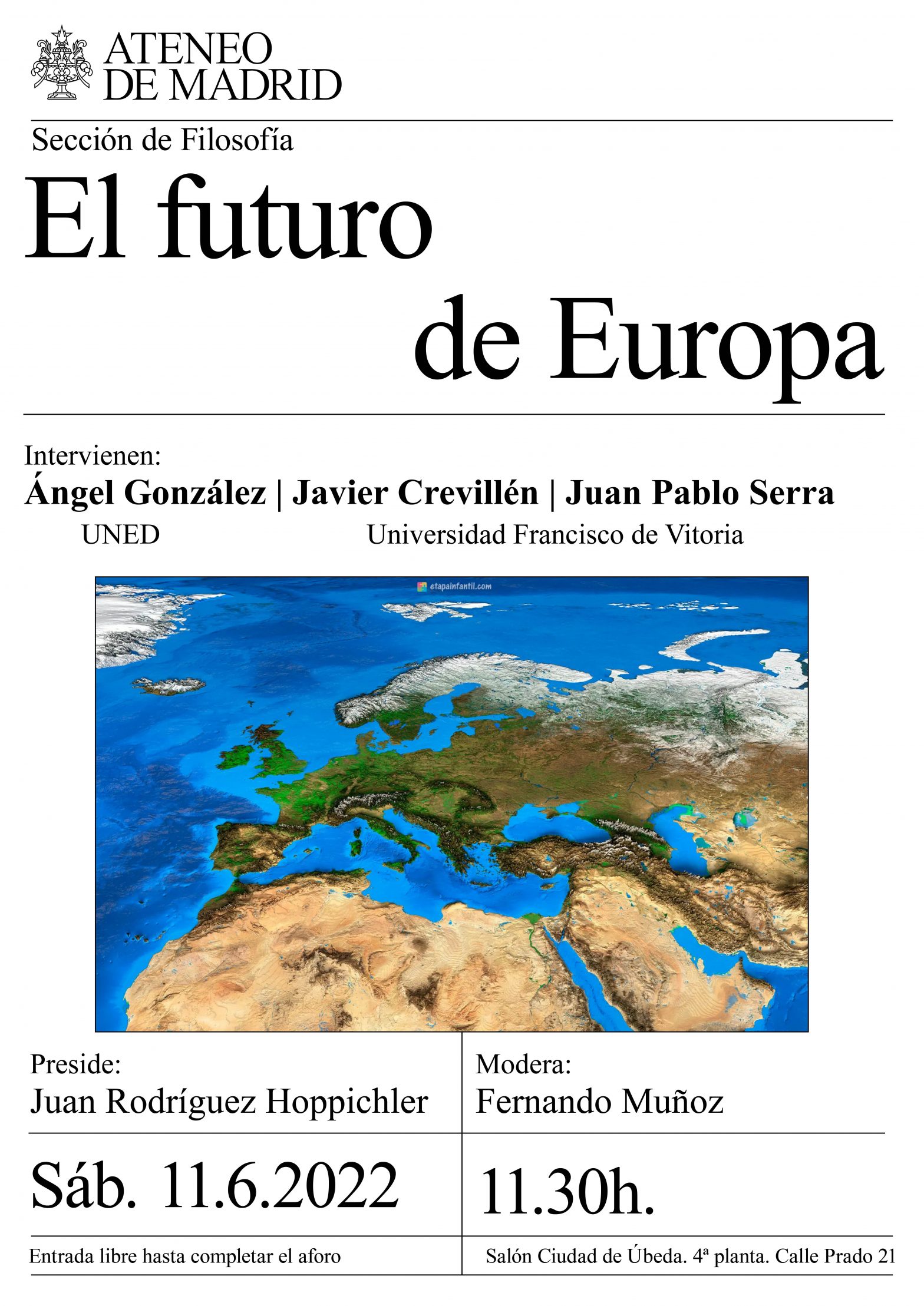 Sección de Filosofía.Intervienen: Ángel González (UNED), Javier Crevillén (Universidad Francisco de Vitoria) y Juan Pablo Serra (Universidad Francisco de Vitoria). Preside Juan Rodríguez Hoppichler. Modera Fernando Muñoz. Salón Ciudad de Úbeda. 11.30 h.