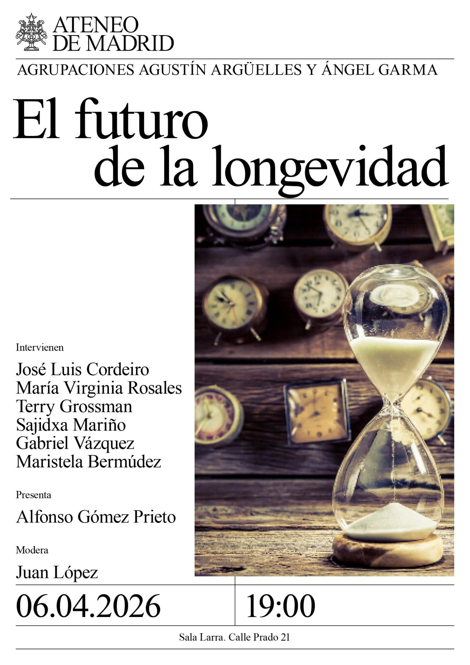 Agrupaciones Agustín Argüelles y Ángel Garma. Intervienen: José Luis Cordeiro, ingeniero y científico; María Virginia Rosales, especialista en salud digital; Terry Grossman, científico, experto en Neurociencia; Sajidxa Mariño, médica otorrinolaringóloga y CEO de Respira libre; Gabriel Vázquez, ingeniero, experto en Inteligencia Artificial; y Maristela Bermúdez, ingeniera y postgrado en Programación Neurolingüística. Presenta: Alfonso Gómez Prieto, médico. Modera: Juan López. Sala Larra. 19:00h.