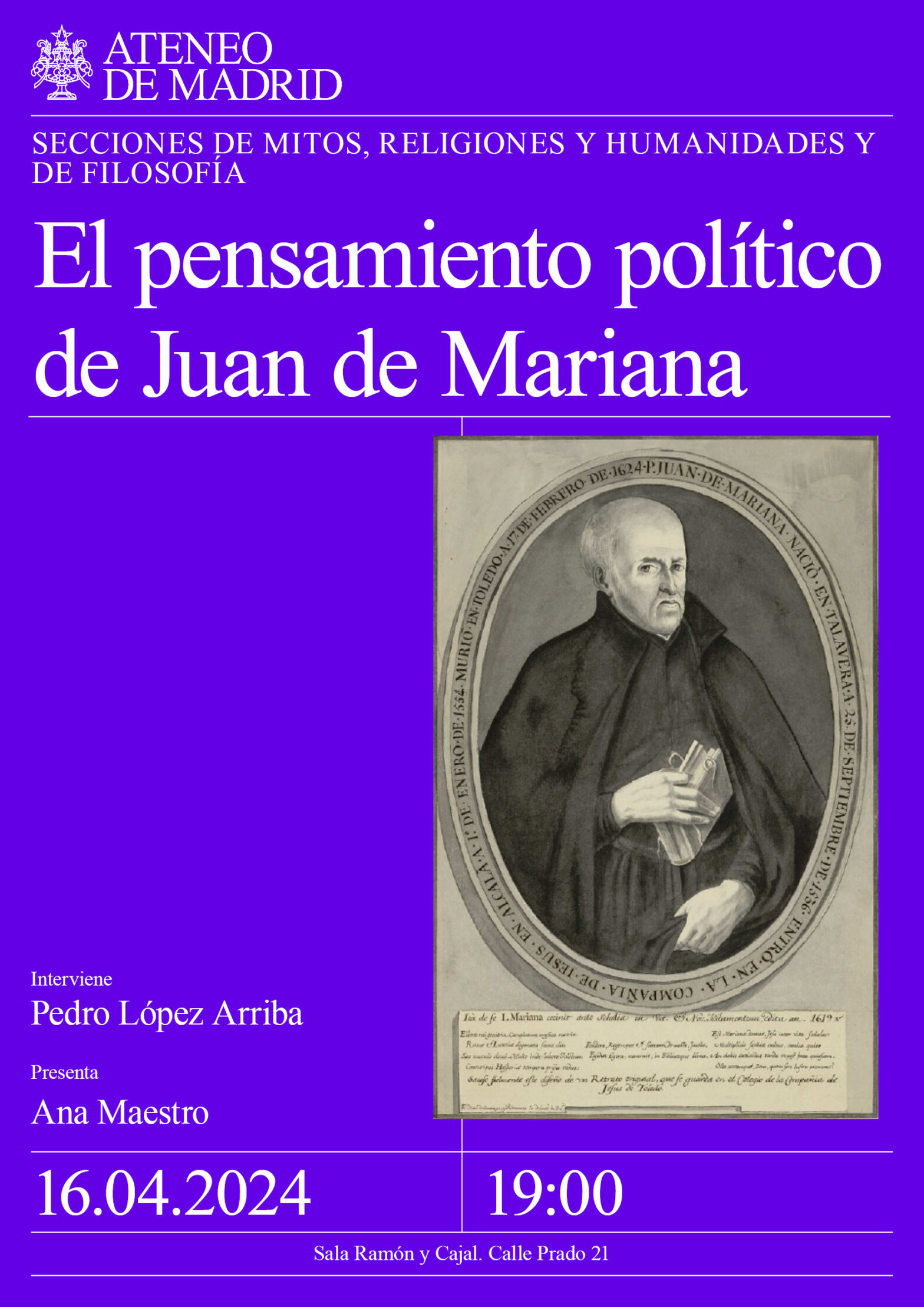 Sección de Mitos, Religiones y Humanidades y de Filosofía. Interviene: Pedro López Arriba. Presenta: Ana Maestro. Sala Ramón y Cajal. 19:00h.