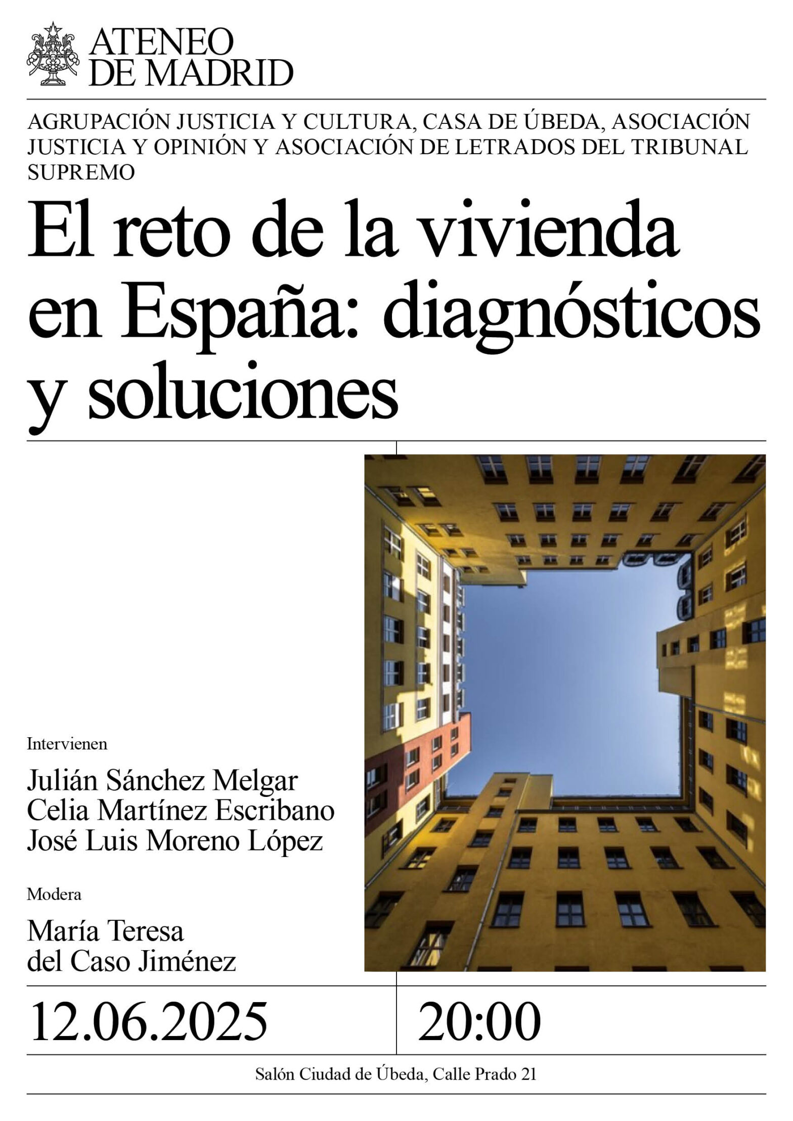 Agrupación Justicia y Cultura, Casa de Úbeda, Asociación Justicia y Opinión y Asociación de Letrados del Tribunal Supremo. Intervienen: Julián Sánchez Melgar, magistrado de la Sala 2.ª del Tribunal Supremo; Celia Martínez Escribano, letrada del Tribunal Constitucional; José Luis Moreno López, letrado del Gabinete Técnico del Tribunal Supremo, Área Contencioso-Administrativa. Modera: María Teresa del Caso Jiménez, letrada del Gabinete Técnico del Tribunal Supremo, Área Penal. Salón Ciudad de Úbeda. 20:00h.