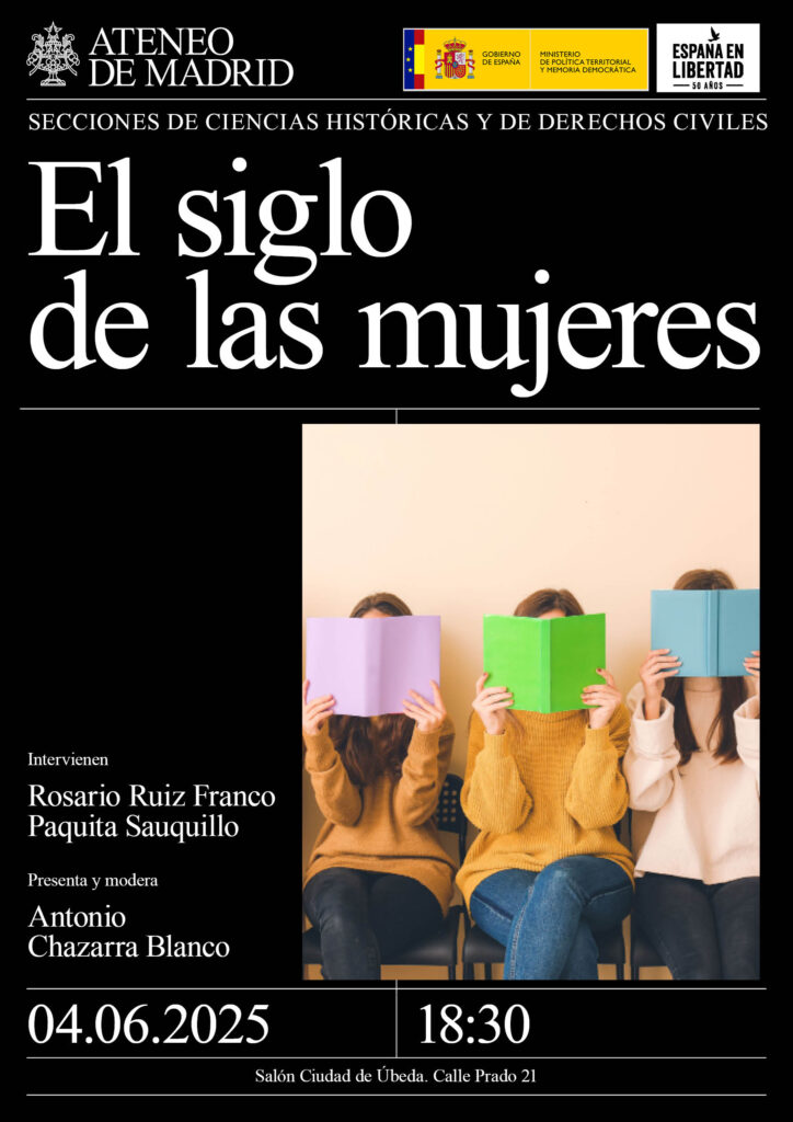 Secciones de Ciencias Históricas y de Derechos Civiles. Intervienen: Rosario RuizFranco, profesora de Historia Contemporánea de la Universidad Carlos III; y Paquita Sauquillo, abogada. Presenta y modera Antonio Chazarra Blanco. Salón Ciudad de Úbeda. 18:30h.