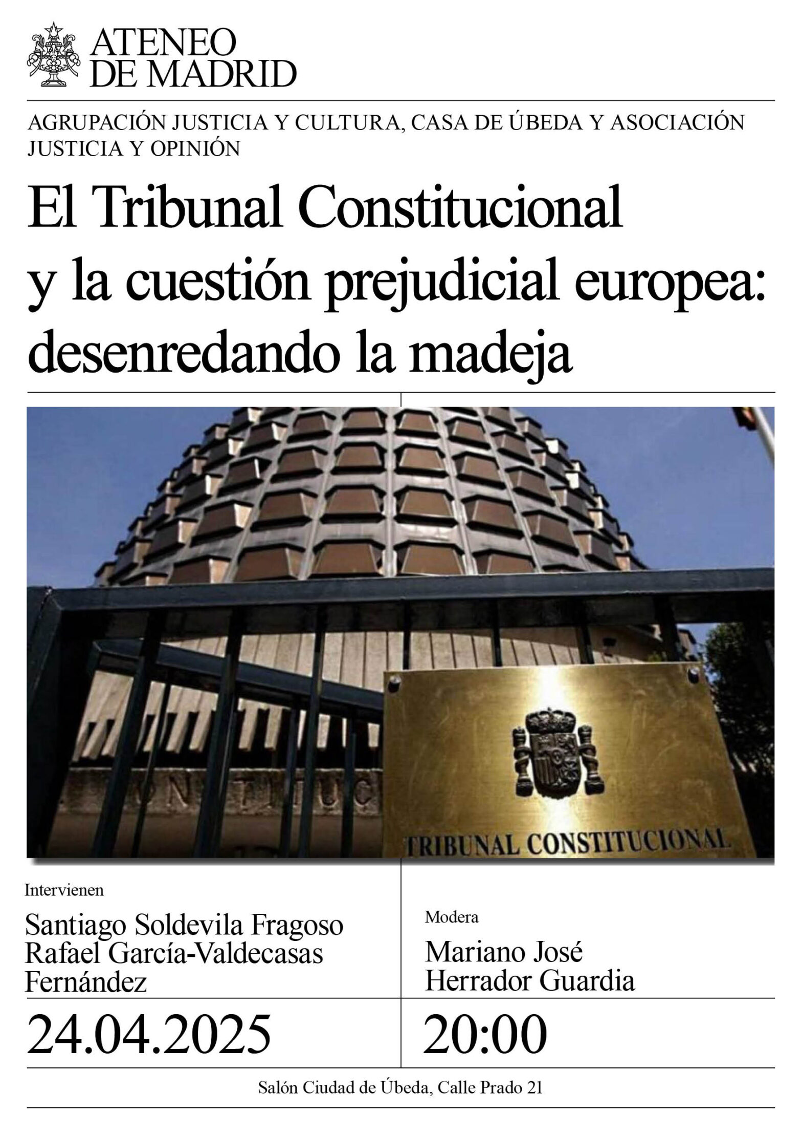 Agrupación Justicia y Cultura, Casa de Úbeda y Asociación Justicia y Opinión. Intervienen: Santiago Soldevilla Fragoso, magistrado de la Audiencia Nacional (Sala de lo Contencioso-Administrativo), juez del Tribunal