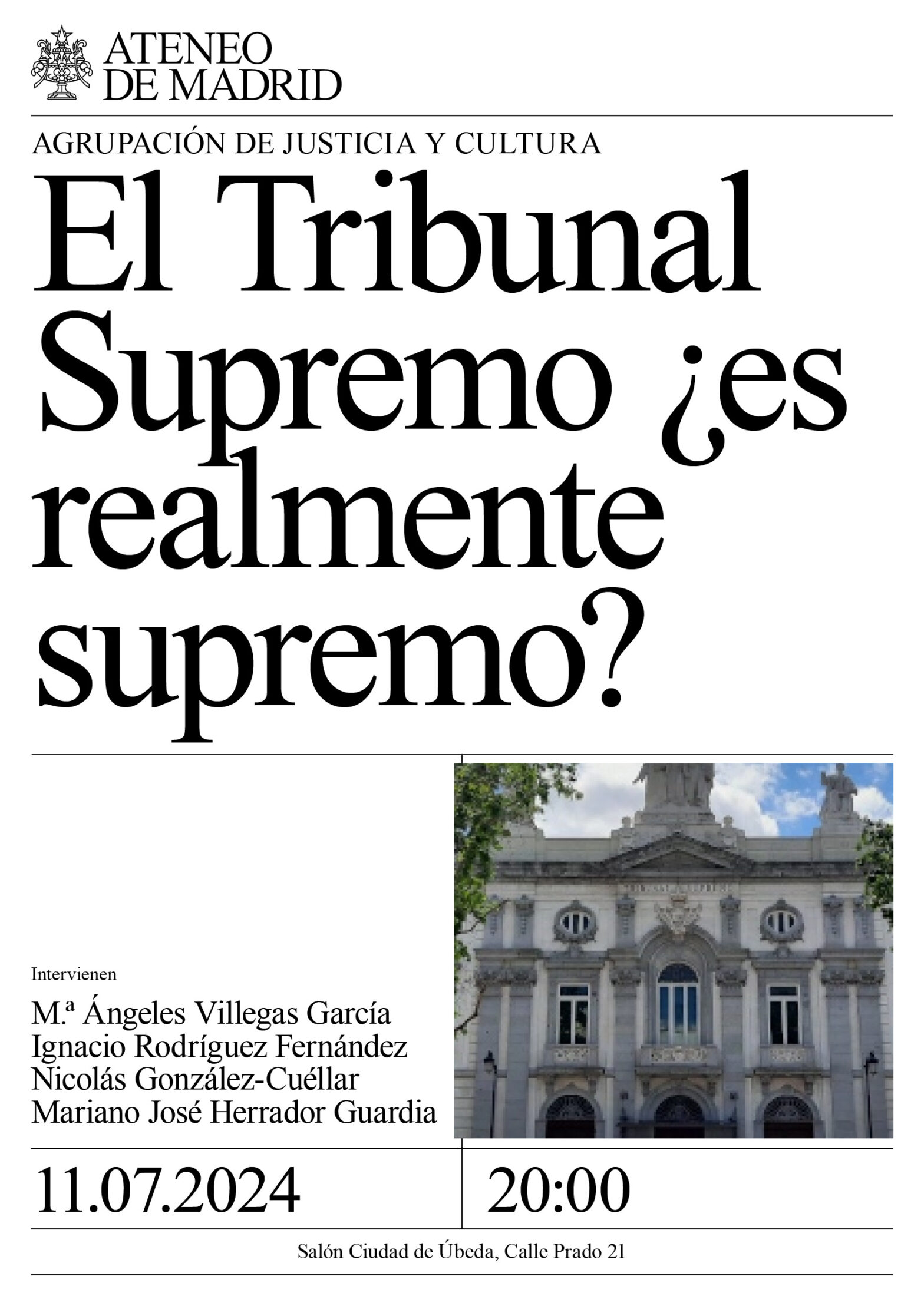 Agrupación de Justicia y Cultura. Intervienen: M.ª Ángeles Villegas García, magistrada, coordinadora del Gabinete Técnico de la sala penal del Tribunal Supremo; Ignacio Rodríguez Fernández, fiscal, letrado del Tribunal Constitucional; Nicolás González-Cuéllar Serrano, catedrático de Derecho Procesal; Mariano José Herrador Guardia, abogado. Salón Ciudad de Úbeda. 20:00h.
