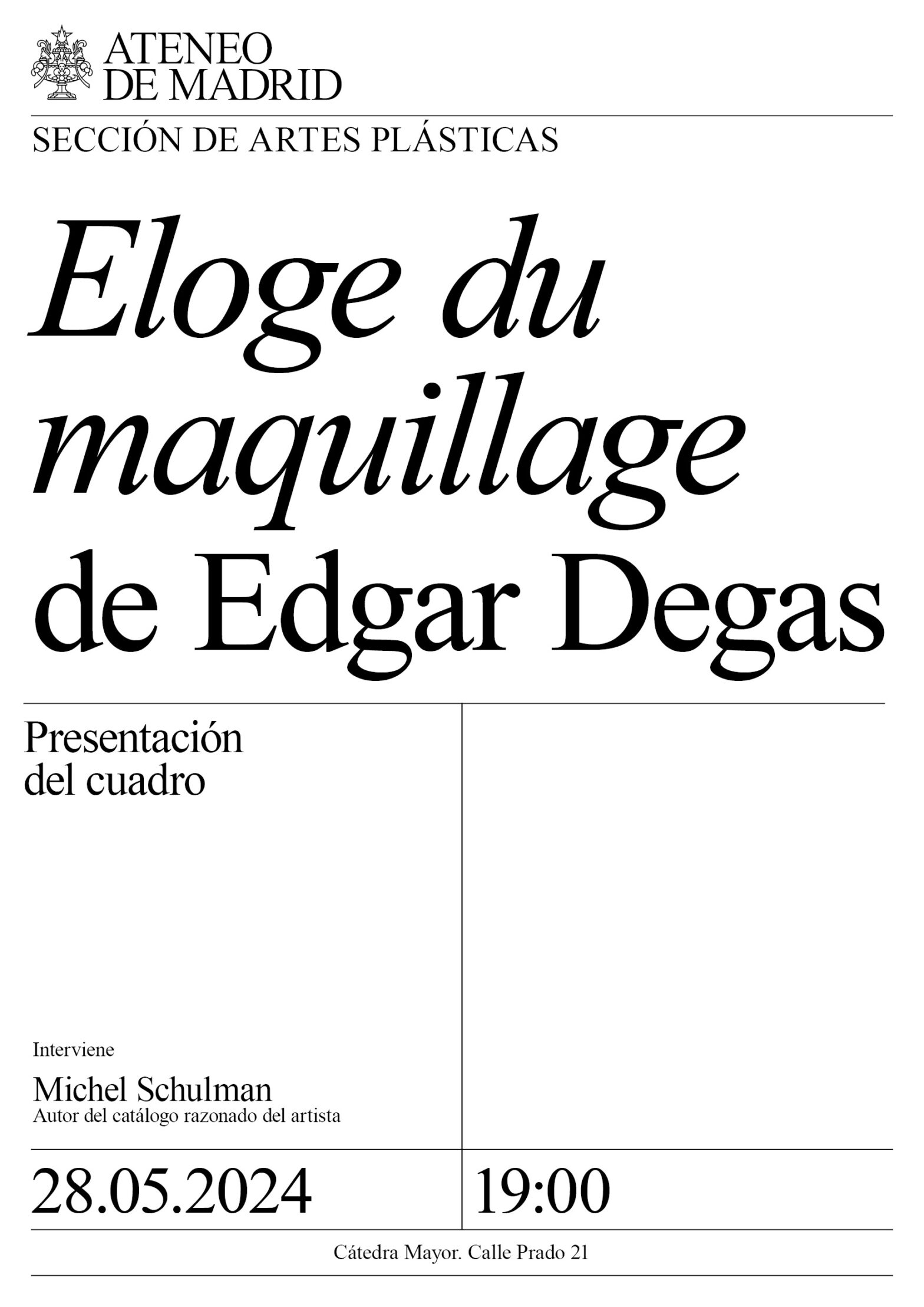 Sección de Artes Plásticas. Interviene: Michel Schulman, autor del catálogo razonado del artista. Cátedra Mayor. 19:00h.