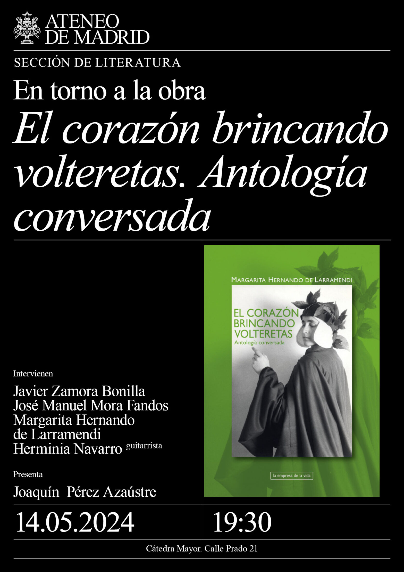 Sección de Literatura. Intervienen: Javier Zamora Bonilla, profesor de Historia del pensamiento y de los movimientos sociales y políticos UCM; José Manuel Mora Fandos, poeta y profesor de Lectura y escritura en Centro Universitario Villanueva; Margarita Hernando de Larramendi, poeta; y Herminia Navarro, guitarrista. Presenta: Joaquín Pérez Azaústre. Cátedra Mayor. 19:30h.
