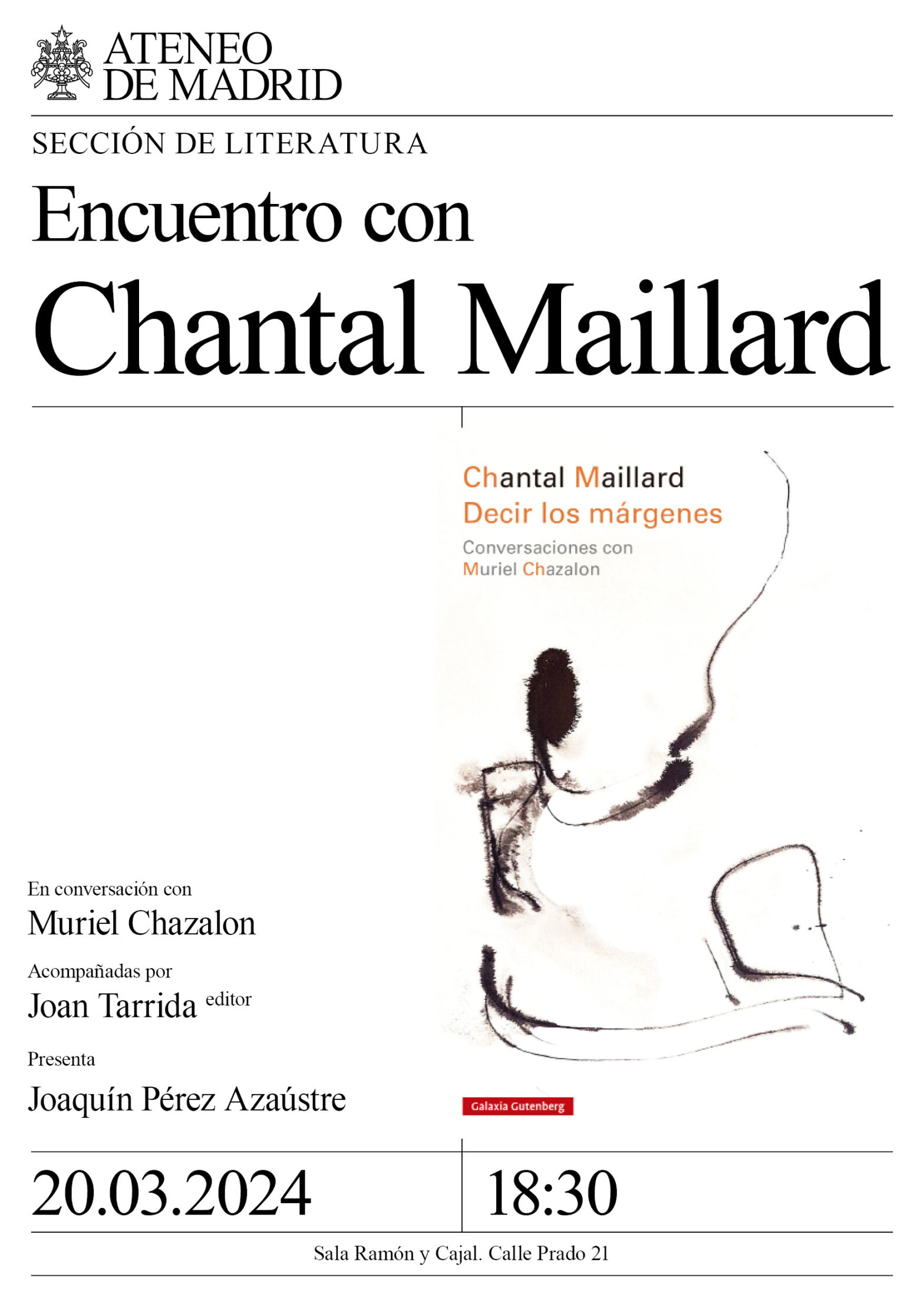 Sección de Literatura. En conversación con: Muriel Chazalon. Acompañadas de: Joan Tarrida, editor. Presenta: Joaquín Pérez Azaústre. Sala Ramón y Cajal. 18:30h.