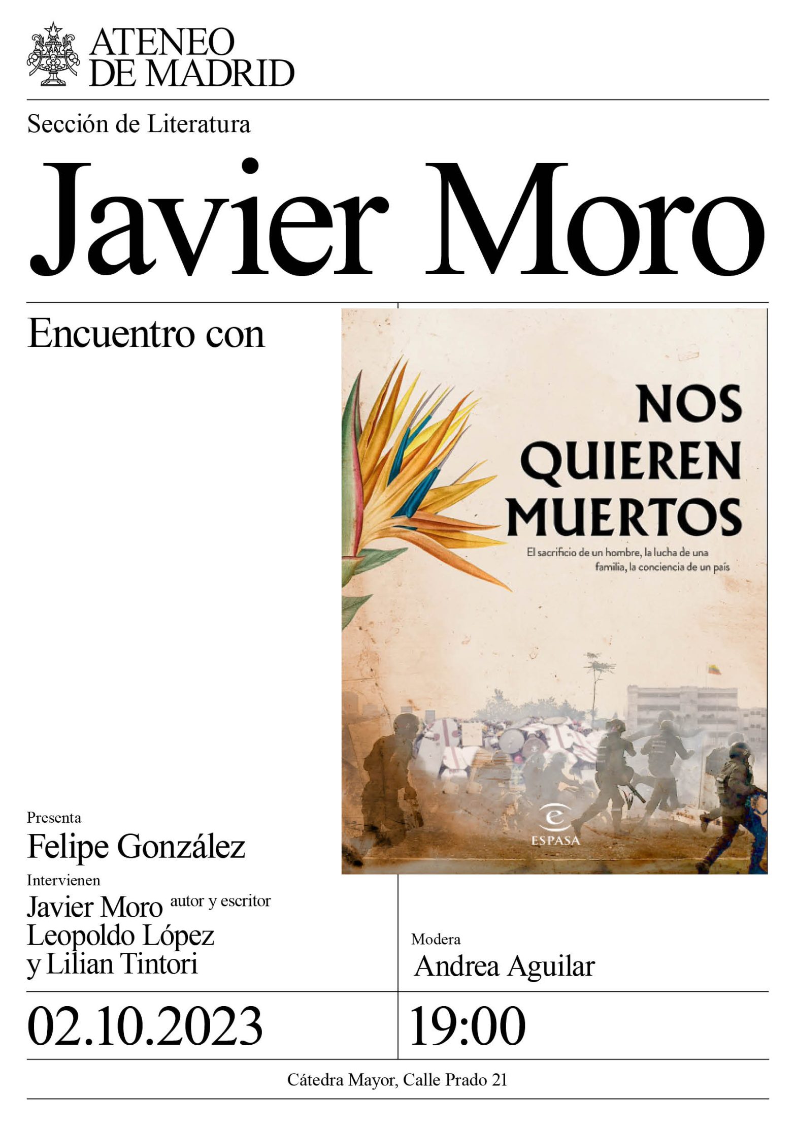 Sección de Literatura. Presenta Felipe González. Participan Javier Moro, escritor y autor del libro; Leopoldo López y Lilian Tintori. Modera Andrea Aguilar. Cátedra Mayor, 19:00 h.