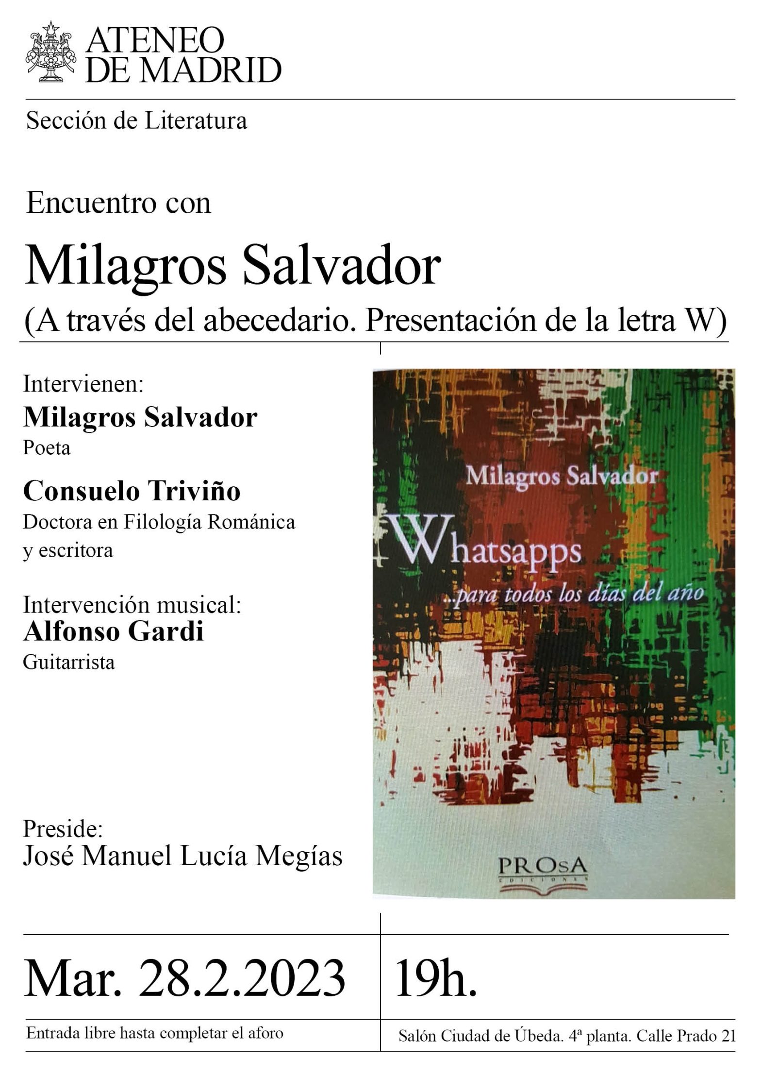 Encuentro con Milagros Salvador. A través del abecedario. Presentación de la letra W