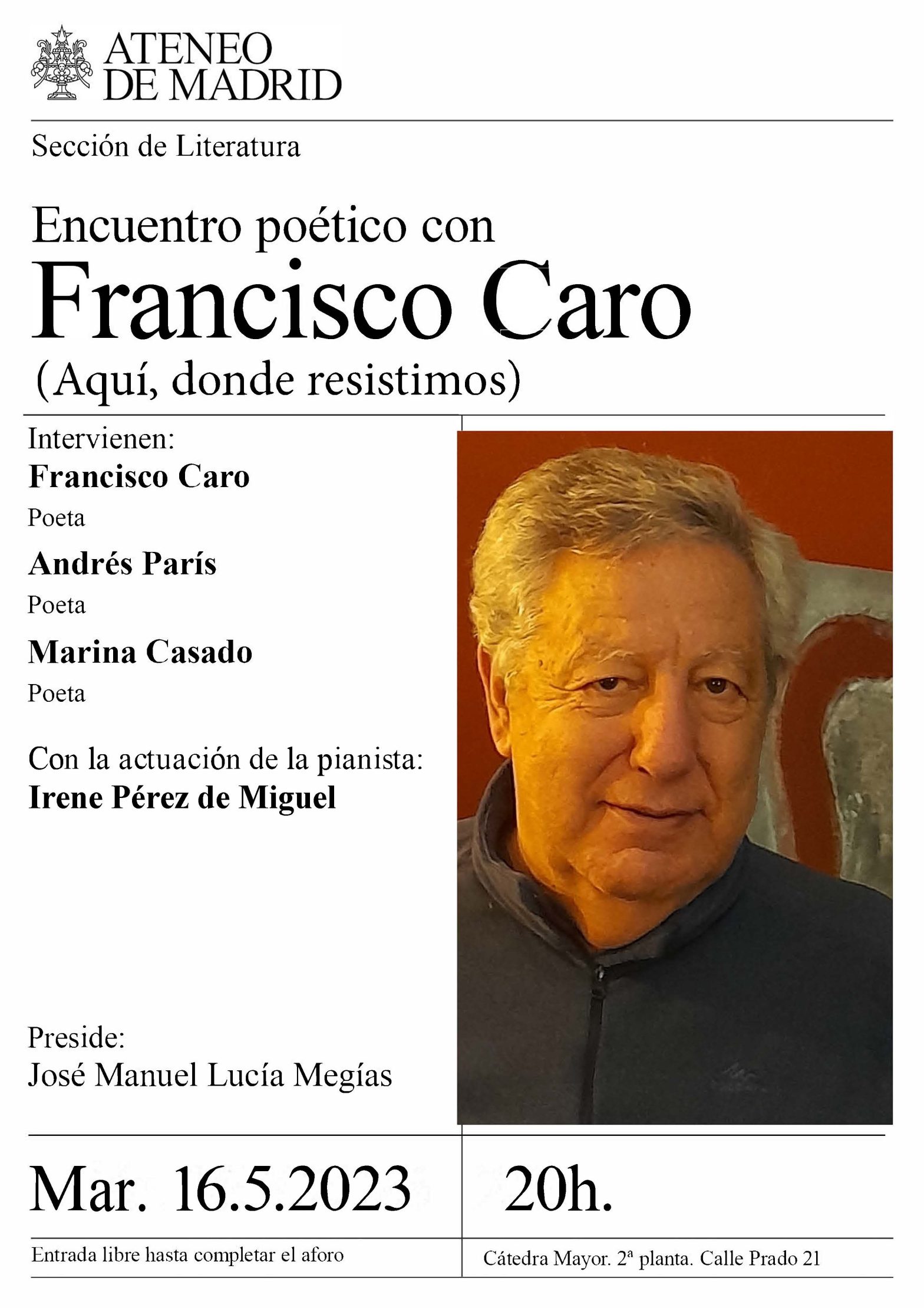 Sección de Literatura. Participantes: Francisco Caro, poeta; Andrés París, poeta; Marina Casado, poeta. Preside: José Manuel Lucía Megías. Con la actuación de la pianista: Irene Pérez de Miguel. Cátedra Mayor. 20h.