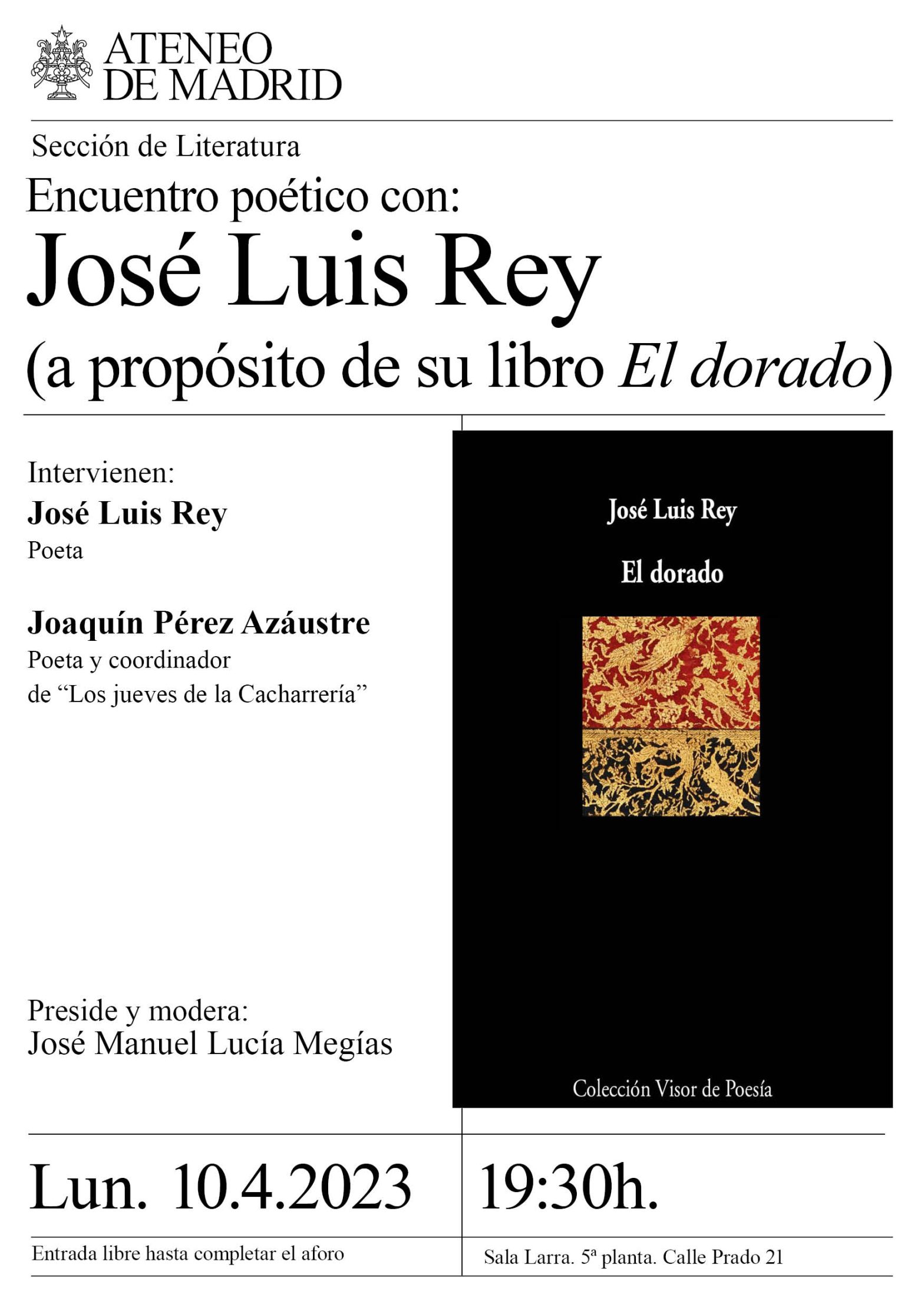 Sección de Literartura. Intervienen: José Luis Rey, poeta y Joaquín Pérez Azaústre, poeta y coordinador de Los Jueves de la Cacharrería. Preside y modera: José Manuel Lucía Megís. Sala Larra. 19:30h.