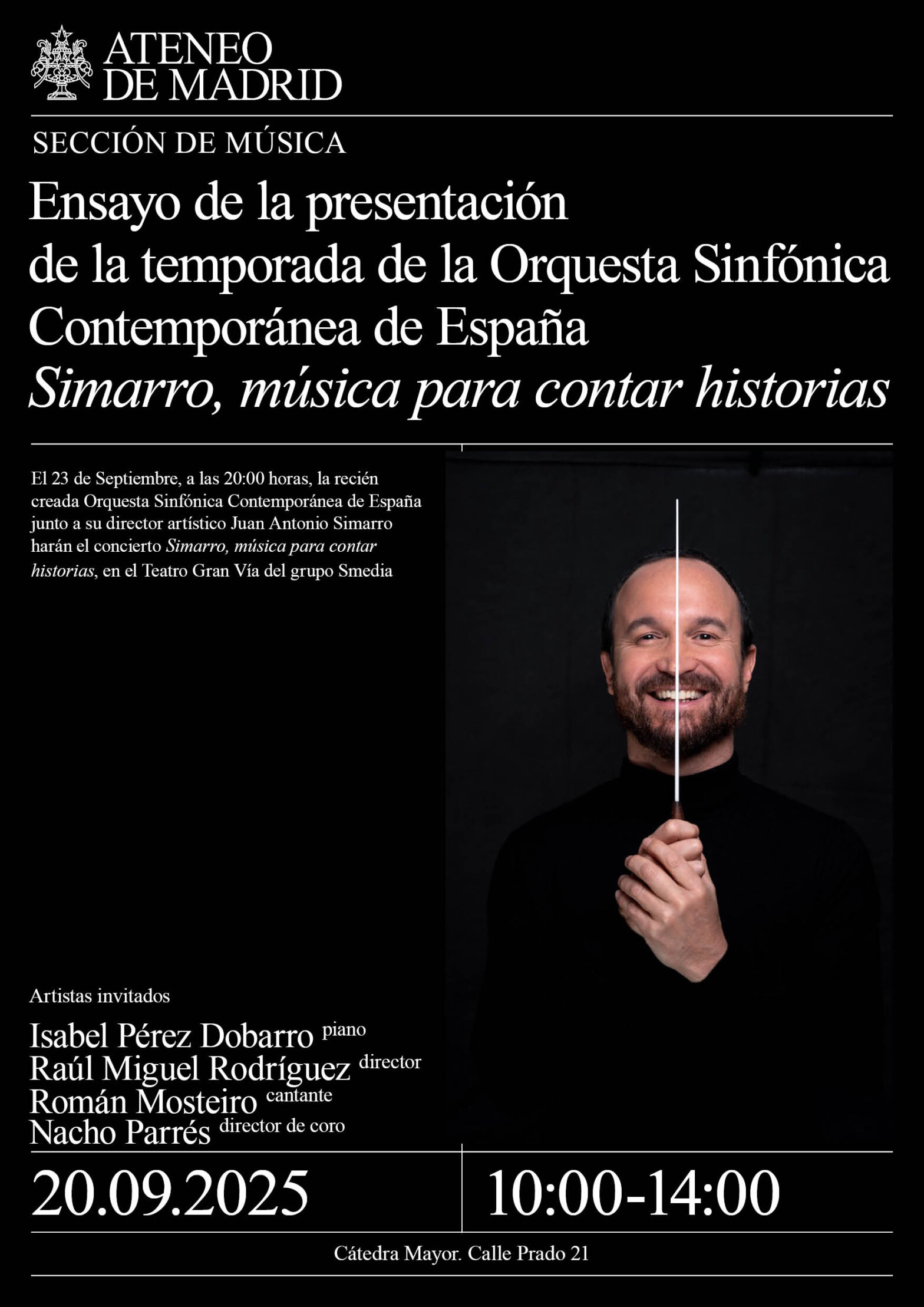 Ensayo de la presentación de la temporada de la Orquesta Sinfónica Contemporánea de España. «Simarro, música para contar historias»