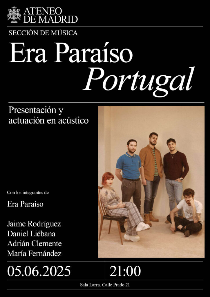 Sección de Música. Con los integrantes de Era Paraíso: Jaime Rodríguez, Daniel Liébana, Adrián Clemente y María Fernández. Sala Larra. 21:00h.