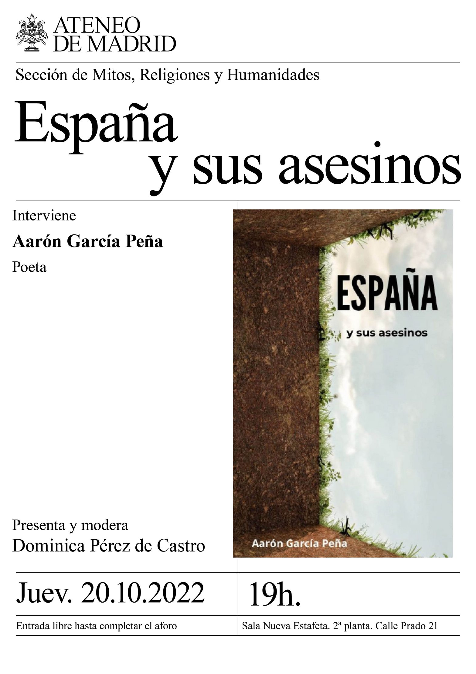 Sección-Tertulia de Mitos, Religiones y Humanidades. Interviene Aarón García Peña. Poeta. Presenta Dominica Pérez de Castro. Sala Nueva Estafeta. 19 h.