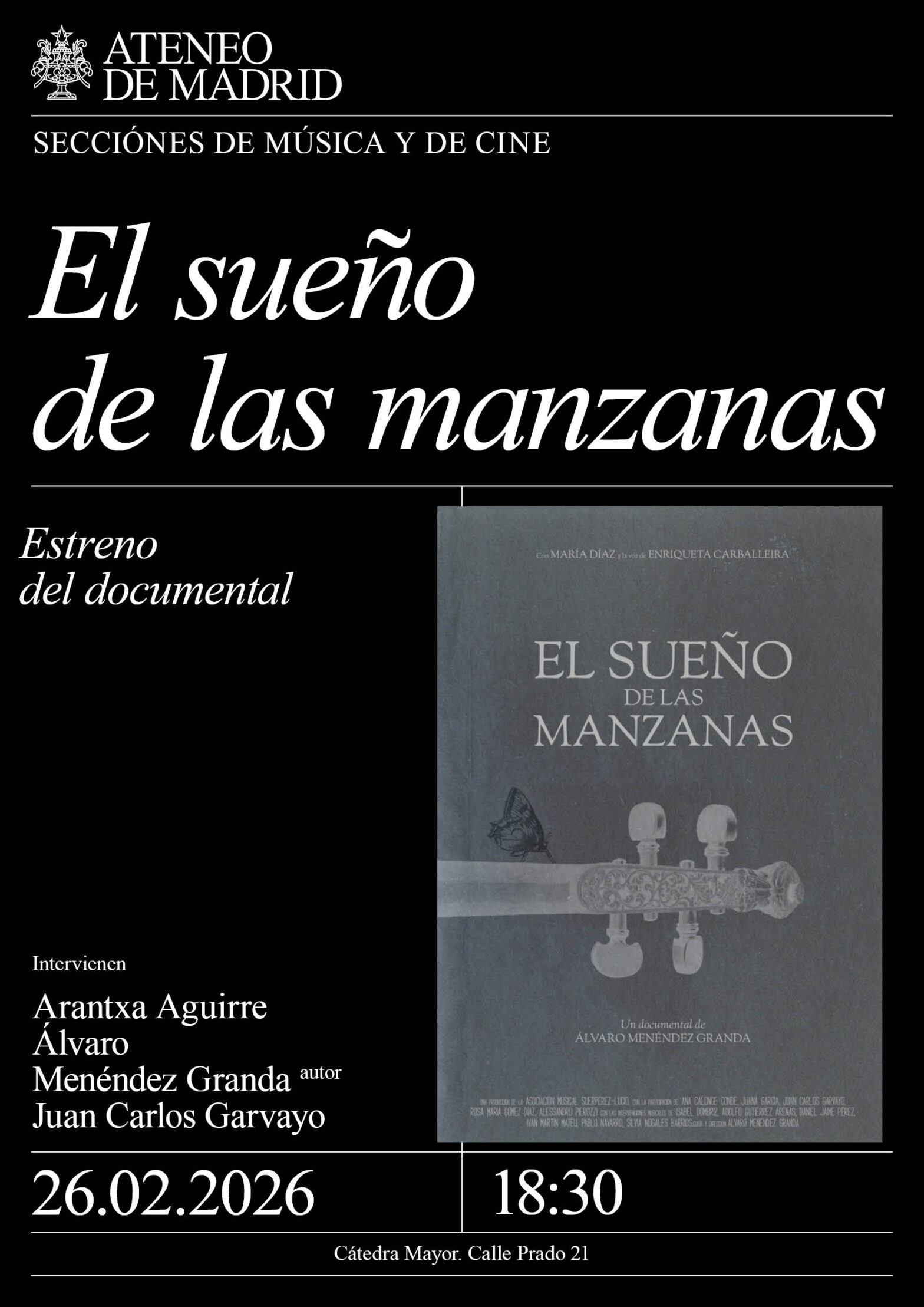 Secciones de Música y de Cine. Intervienen: Arantxa Aguirre, cineasta; Álvaro Menéndez Granda, autor; y Juan Carlos Garvayo. Cátedra Mayor. 18:30h.