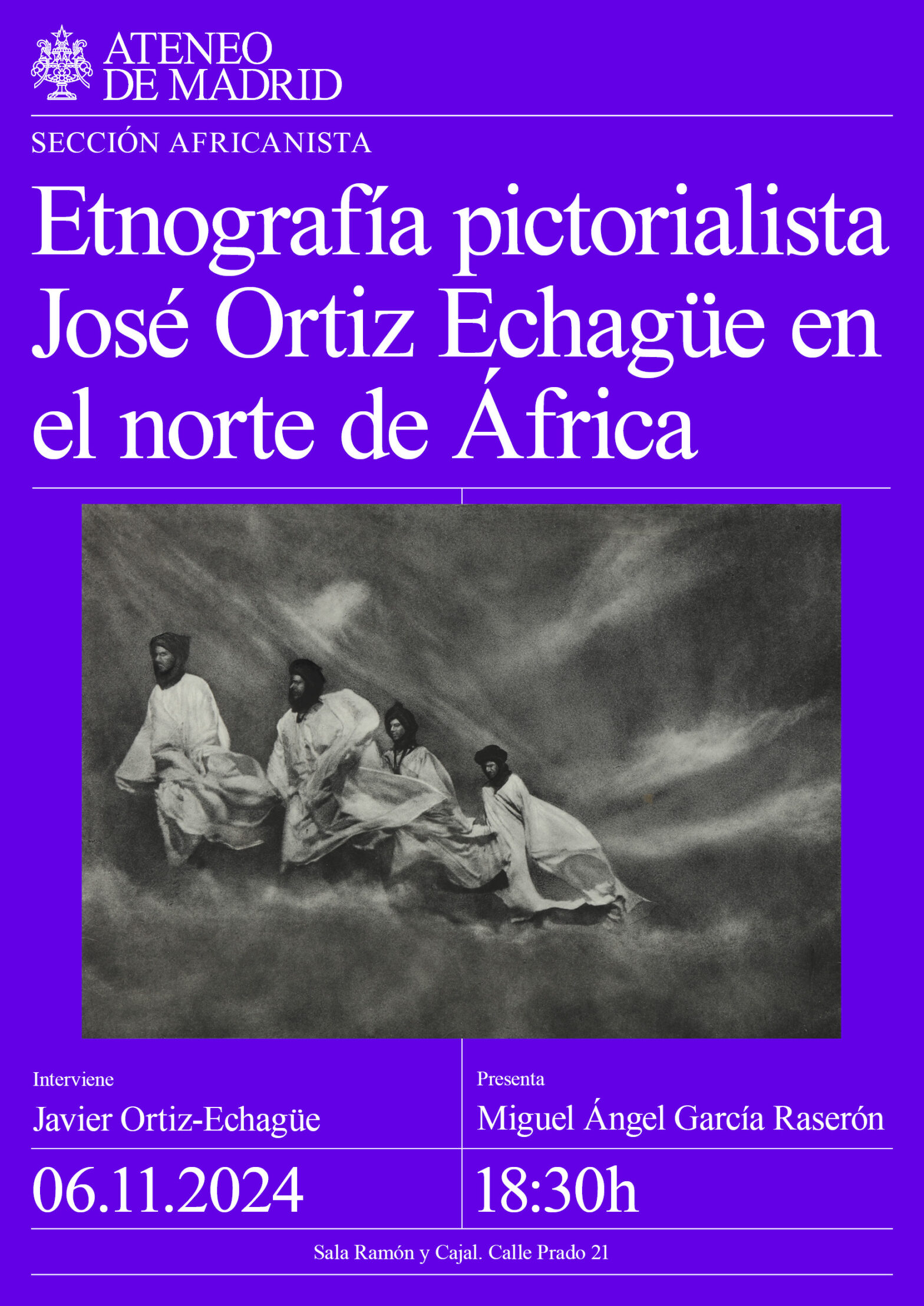 Sección Africanista. Interviene: Javier Ortiz-Echagüe, historiador del arte. Ha participado en el comisariado de exposiciones como de Desbordamiento de Val del Omar (Museo Reina Sofía, 2010), Norte de África. Ortiz Echagüe (Museu Nacional d’Art de Catalunya, 2013), o Clifford. Vistas de Madrid de Isabel II (Fundación Canal, 2021). También es autor de publicaciones sobre historia de la fotografía y el arte contemporáneo. Presenta: Miguel Ángel García Raserón. Sala Ramón y Cajal. 18:30h.