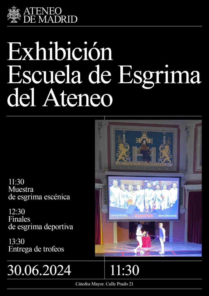 11:30.- Muestra de esgrima escénica. 12:30.- Finales de esgrima deportiva. 13:30.- Entrega de trofeos. Cátedra Mayor. 11:30h.